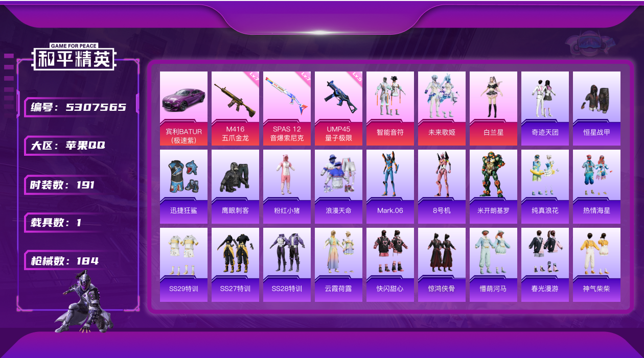 游戏区服:和平精英 / 苹果系统 / QQ帐号