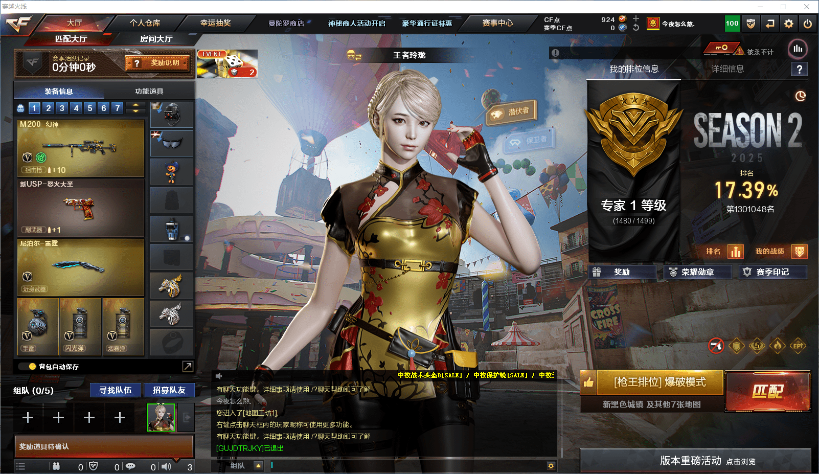 【10436561】【10436561】【16852】可二次实名 辽宁一区32v6王者3炫金可排位/第2赛季专家1/【M200幻神/QBZ03-金色蔷薇/死亡