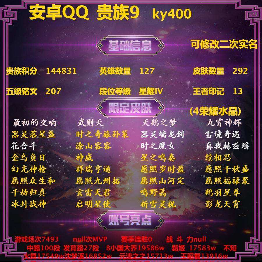 【10848021】【可二次】【QQ(安卓)】金乌负日 黎明之约 星界游侠 暗影游猎 鹰眼统帅 水晶猎龙者 晚萤 圣诞恋歌 优雅恋人 沙漠行僧 紫霞仙子 炽弈燎原 逐梦之音 遇见神鹿 天鹅之梦 月团寄思 瑶:真我赫兹 启示之音 逐梦之翼 海洋之心 古海寻踪 丁香结 深海之息 荣光圣徽 魅力维加斯 浮梦罗烟 久胜战神 大漠名商 驭风魔法 青焰无极 乘风破浪 无双飞将 擒涛扼浪 引擎之心 圣诞狂欢