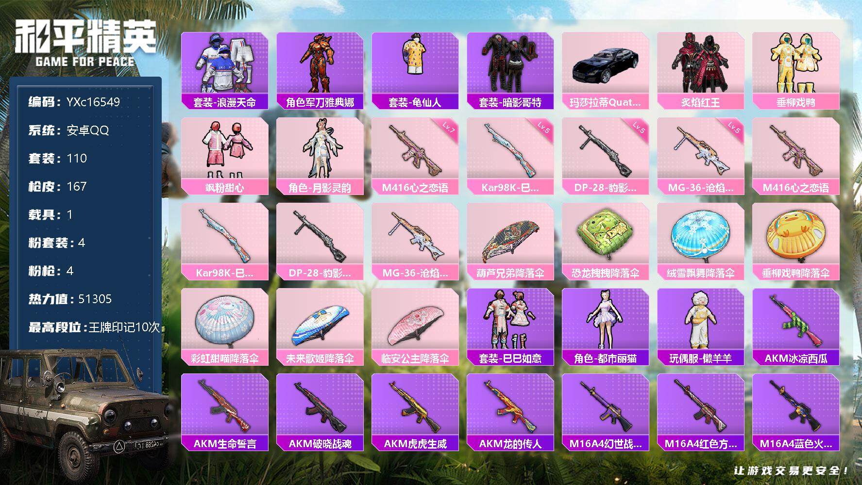 游戏区服:和平精英 / 安卓系统 / QQ账号