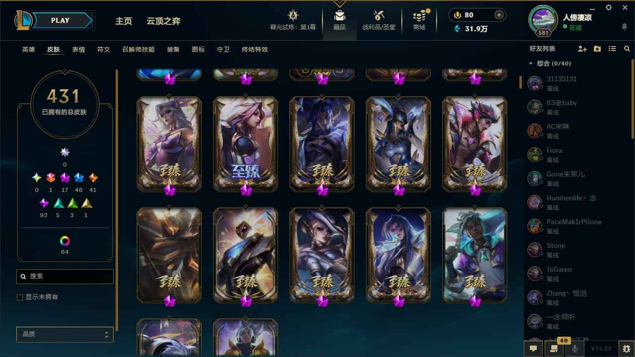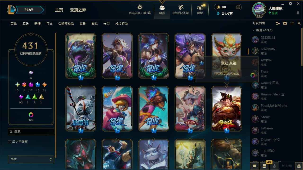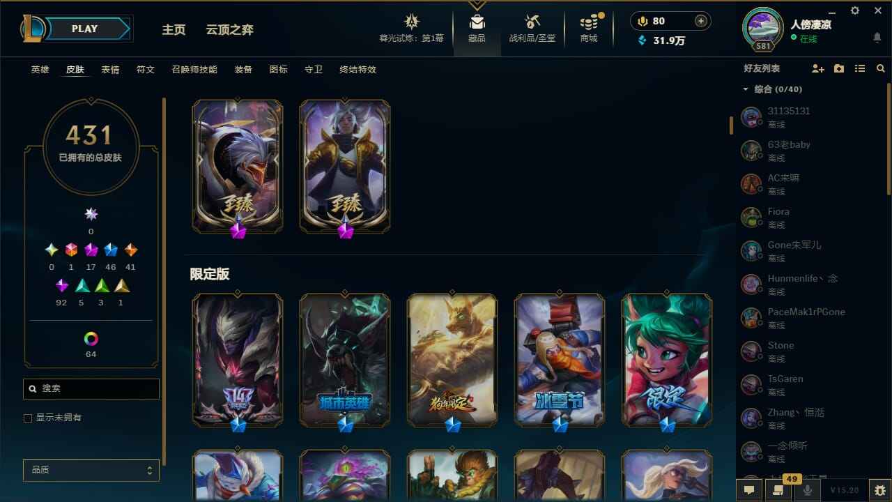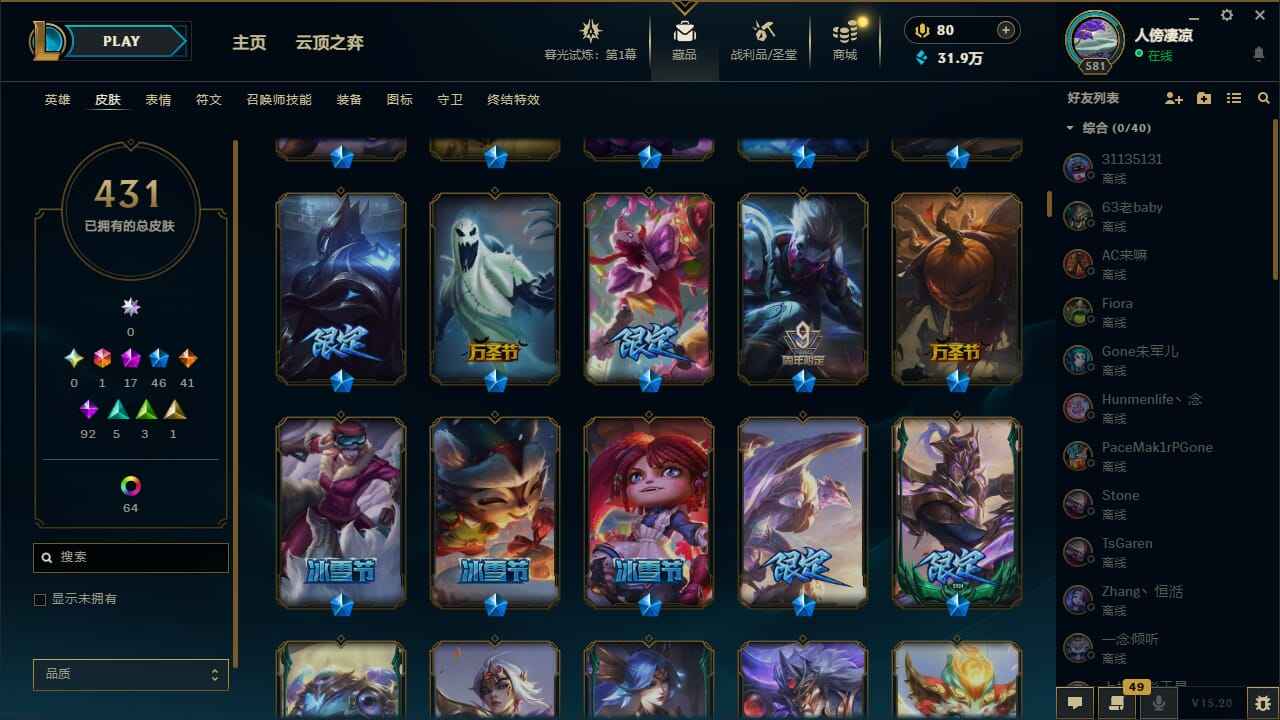 【10922044】[12498679]实名: 可修改 皮肤数: 431