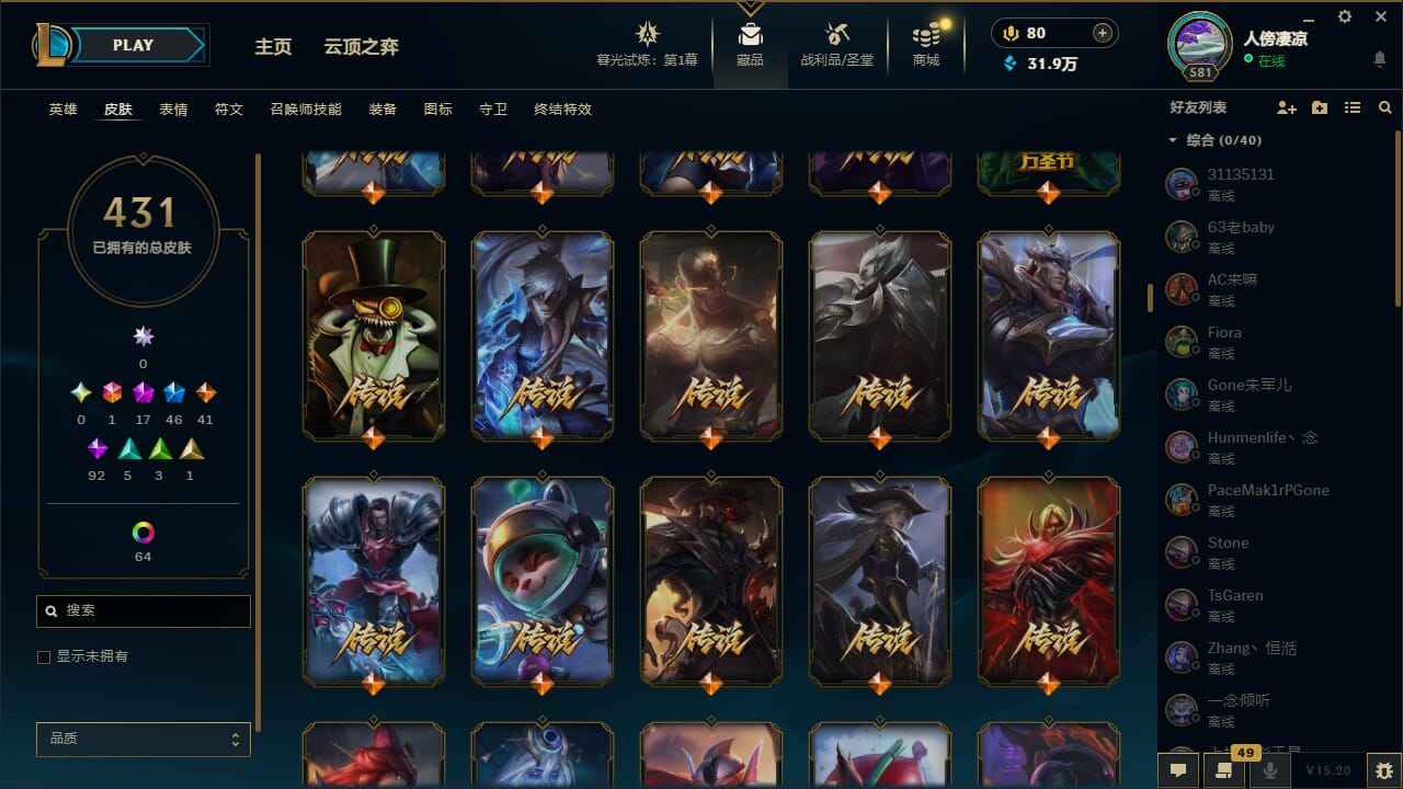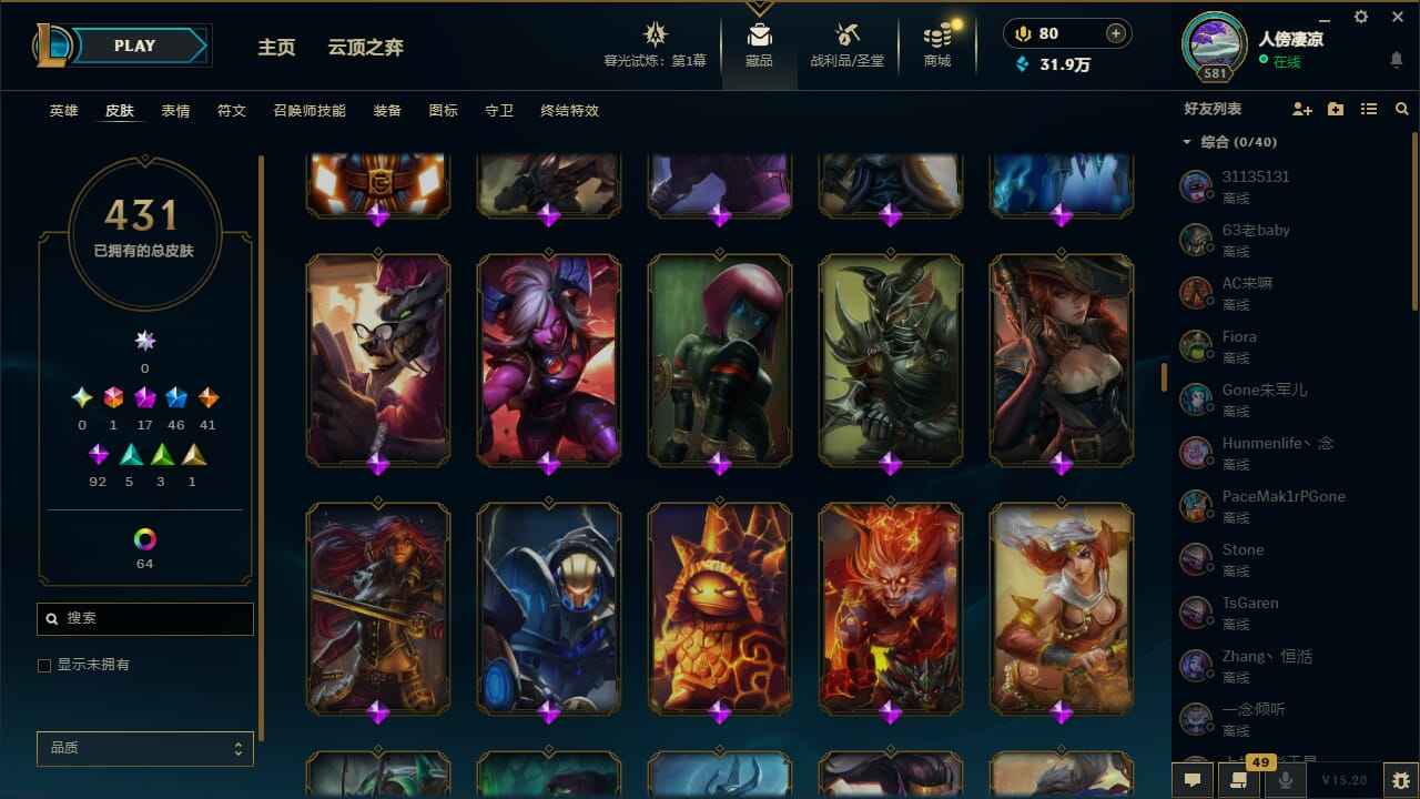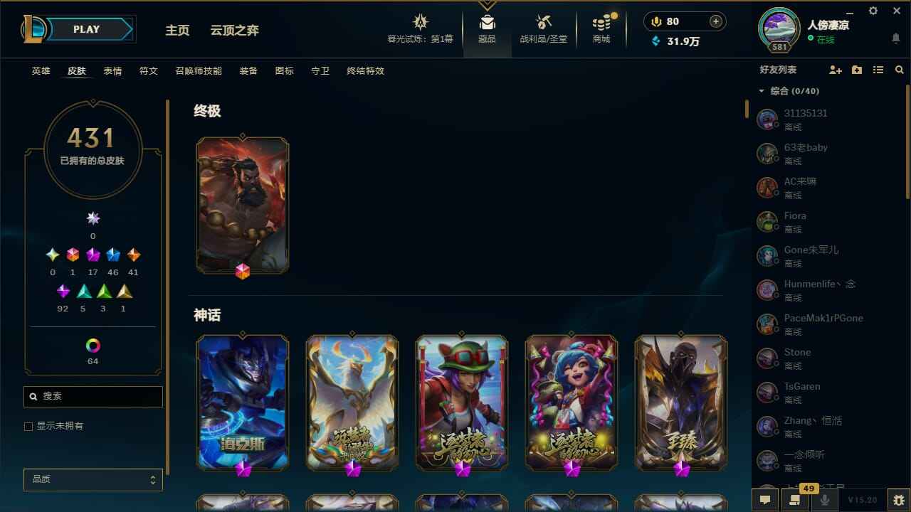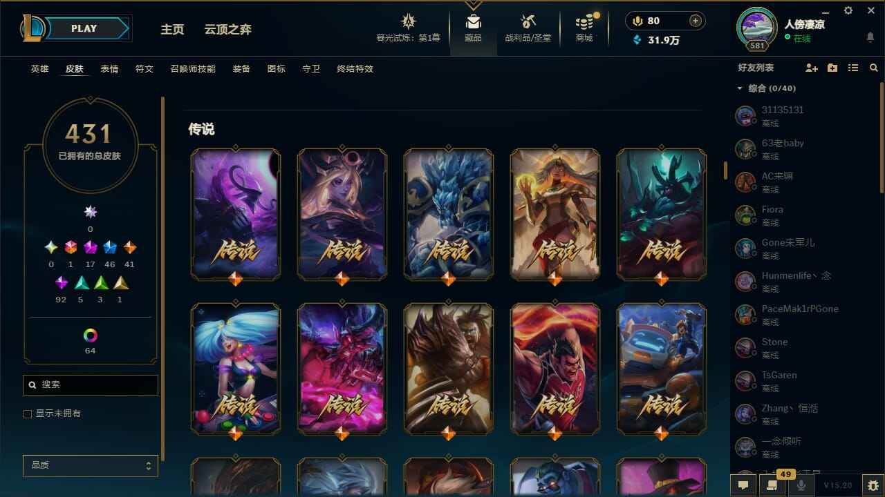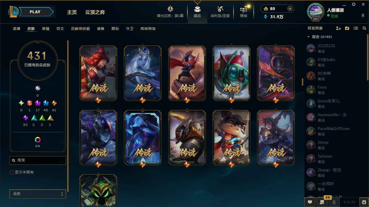 【10922044】[12498679]实名: 可修改 皮肤数: 431