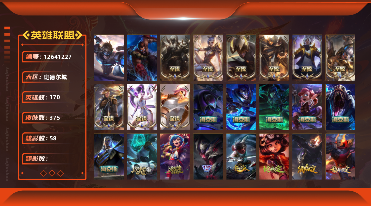 【10953043】[12641227]2终极 18神话 67限定 42传说 113史诗 375皮肤 58炫彩 170英雄 可二次 可修改实名 优质装备:至臻 腥红之月 亚托克斯,至臻 王国机神玄武 盖伦,至臻 黑夜使者 李青,至臻 玉剑传说 武剑仙,至臻 福牛守护者 菲奥娜,至臻 灵能特工 伊泽瑞尔,至臻 神龙尊者 炎龙瑟提,至臻 K/DA ALL OUT卡莎,至臻 真实伤害 亚索,源代码 乐