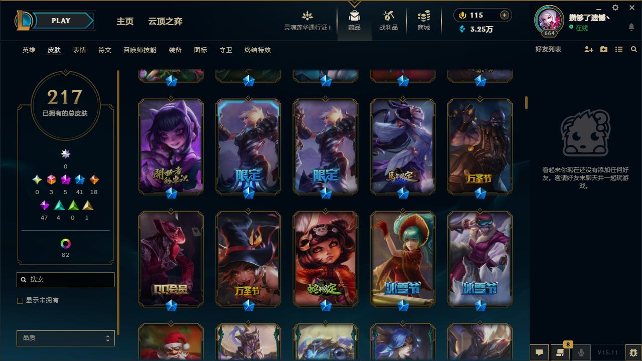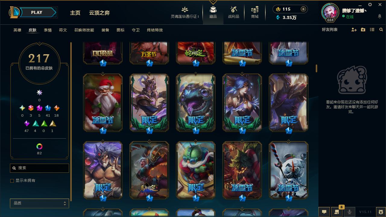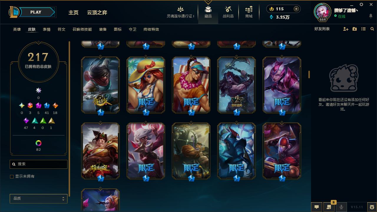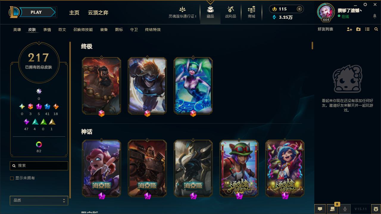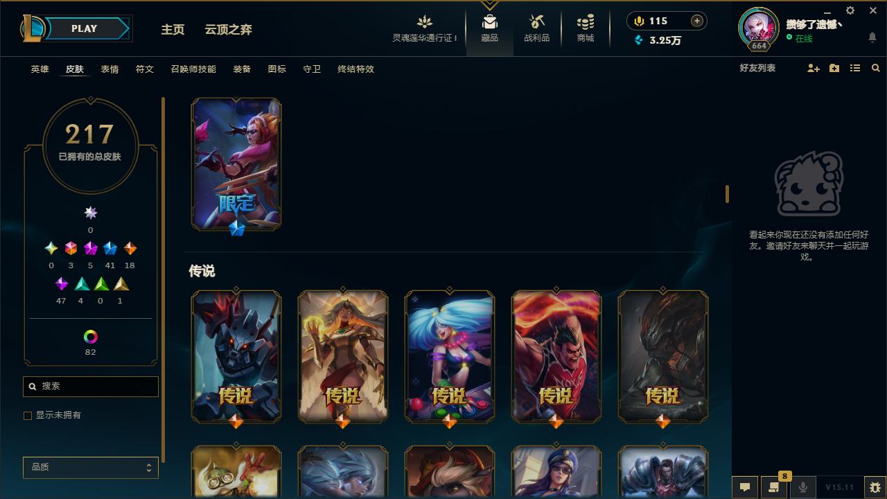 【10955477】[12655957]龙刀!可二次!E11705.诺克萨斯.217皮3终极5神话41限定82炫彩5臻彩.