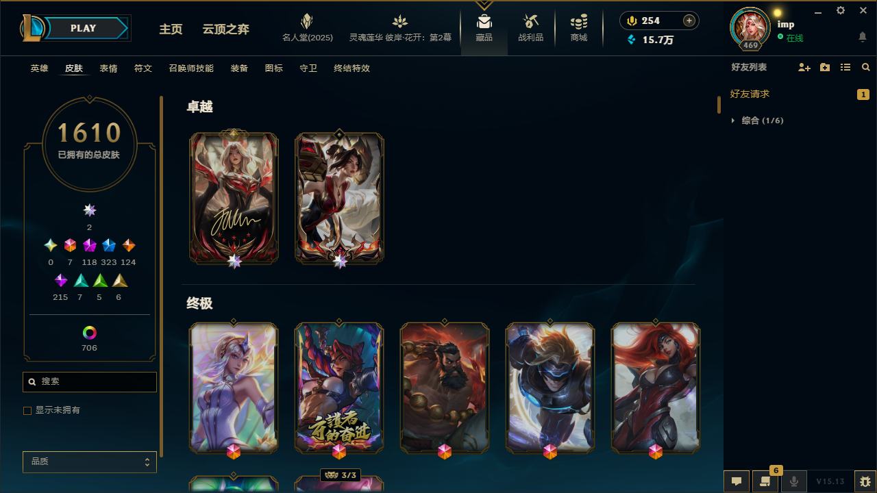 【10961079】[12679877]联盟不朽阿狸签名版!圣天龙李青!龙的传人李青!冰原狙击!臻彩神龙尊者小小亚索!可二次!E11792.比尔吉沃特.1610皮2卓越皮7终极118神话323限定706炫彩73臻彩玉剑男刀!玉剑女刀!DRX冠军限定一套签名版!EDG冠军限定签名版!FPX冠军限定签名版!IG冠军限定一套签名版!雪花头像!莲华绽灵!LPL限定臻彩剑姬天神下凡!LPL限定臻彩卡莎极境