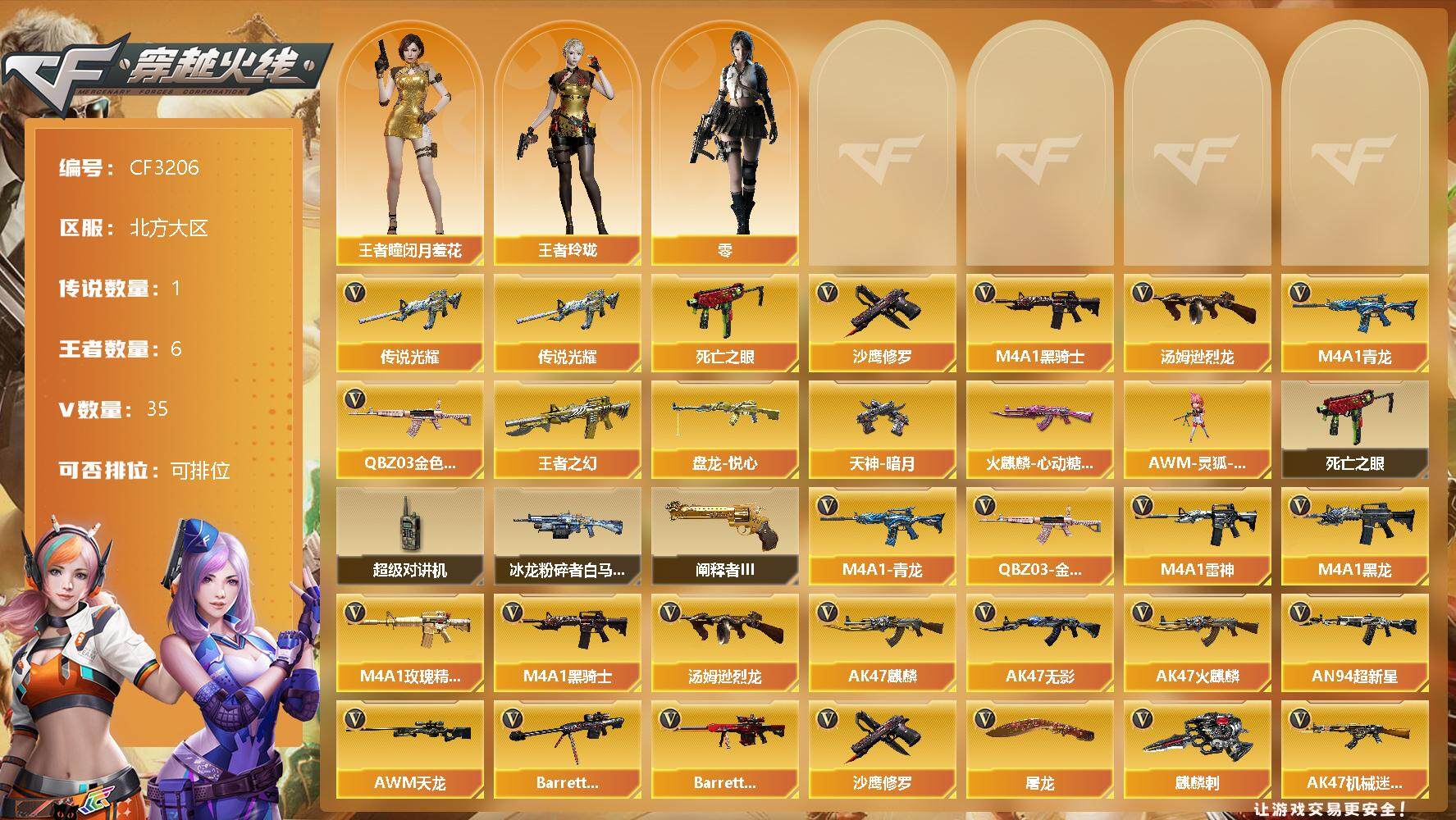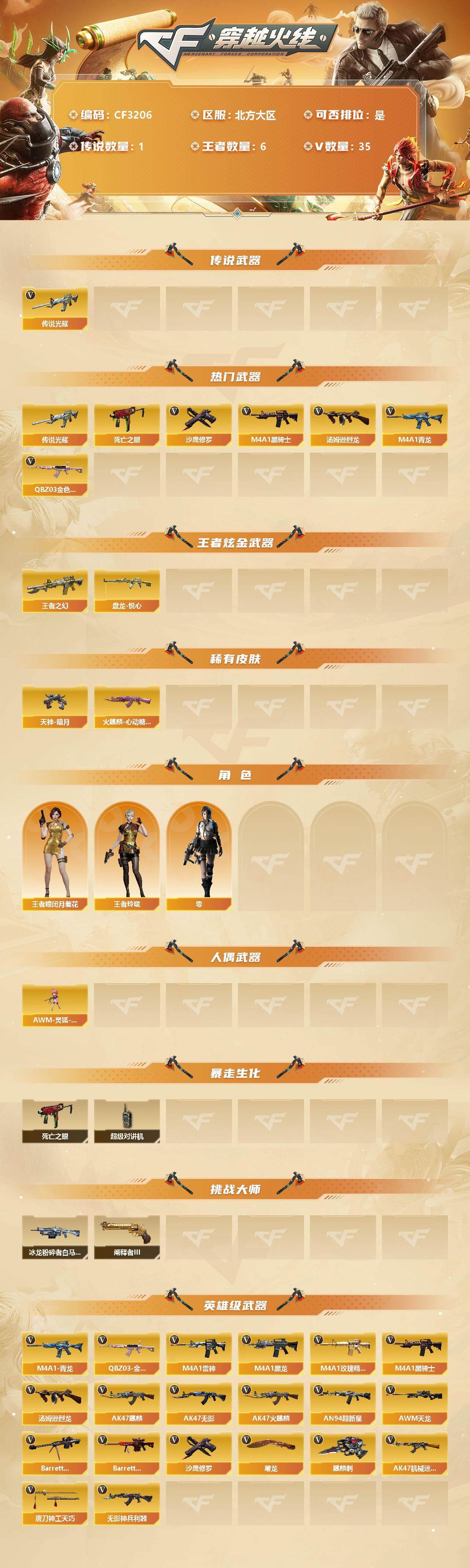 【10997076】【10997076】[12835771]北方大区-35V-6王者-0炫金【死亡之眼】【传说光耀】【王者幻神-觉醒版】【QBZ03-金色蔷薇