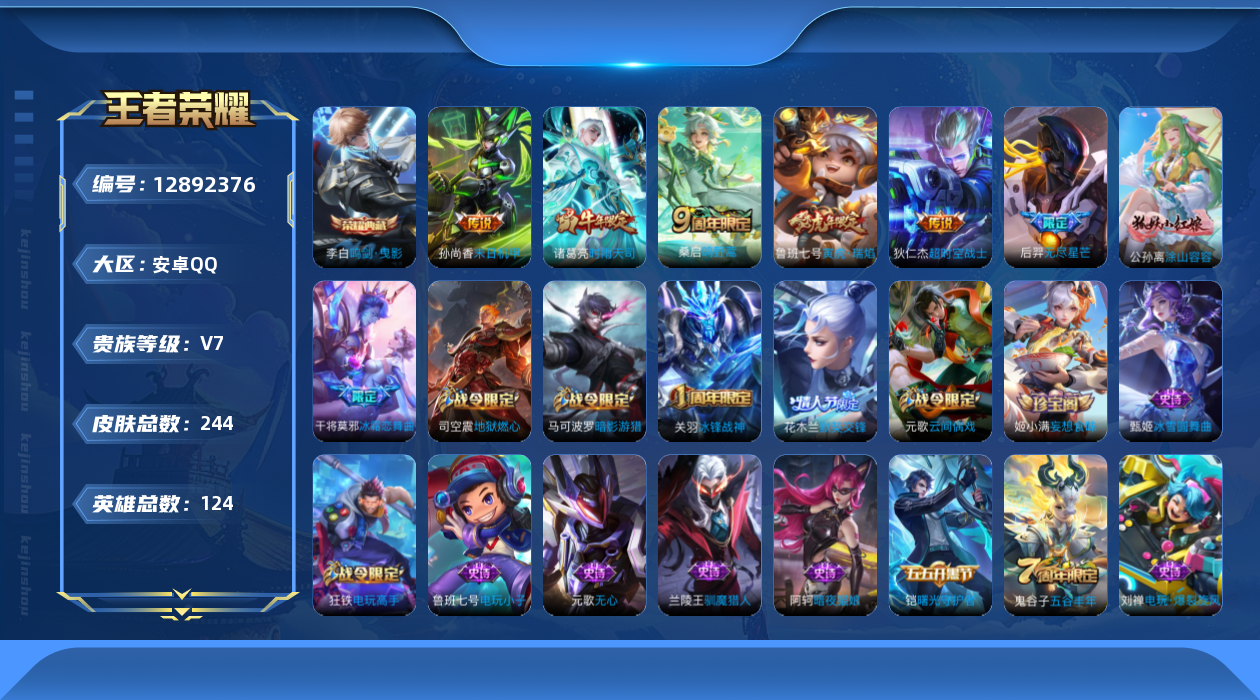 【11014775】【可二次】【QQ(安卓)】黎明之约 乱世虎臣 鹰眼统帅 水晶猎龙者 偶像歌手 原初探秘者 圣诞恋歌 星夜王子 街头霸王 沙漠行僧 暗夜猫娘 御霄 寅虎·瑞焰 逐梦之影 漠中幻影 敬我三分 缤纷独角兽 万华元夜 暗夜贵公子 高山流水 御銮 特工魅影 女仆咖啡 金属风暴 疑决卦 醍醐杖 德古拉伯爵 江河有灵 古海寻踪 摇滚巨星 赵云 神迹守卫 鬼剑武藏 探海日记 魅力维加斯 云中