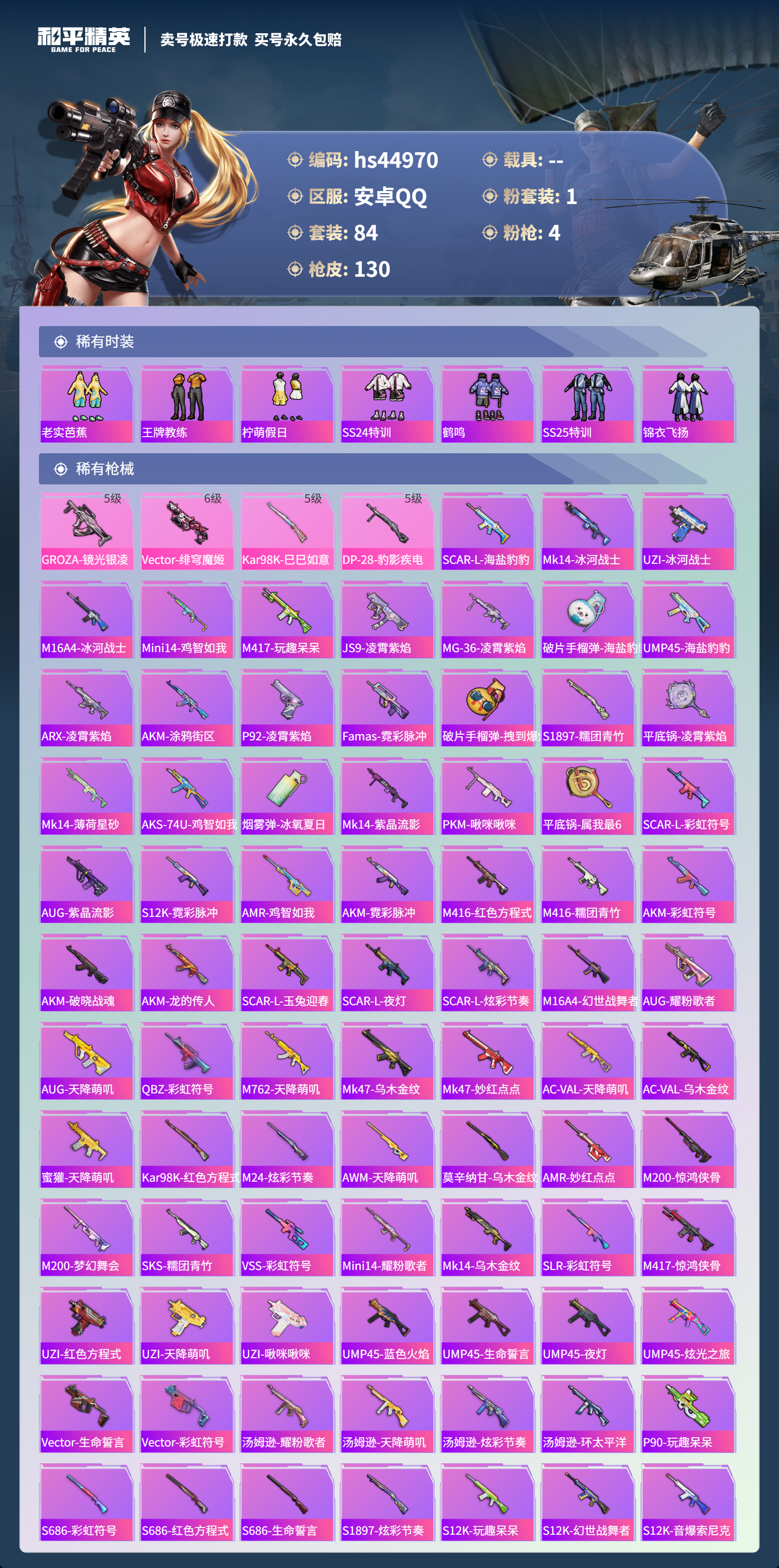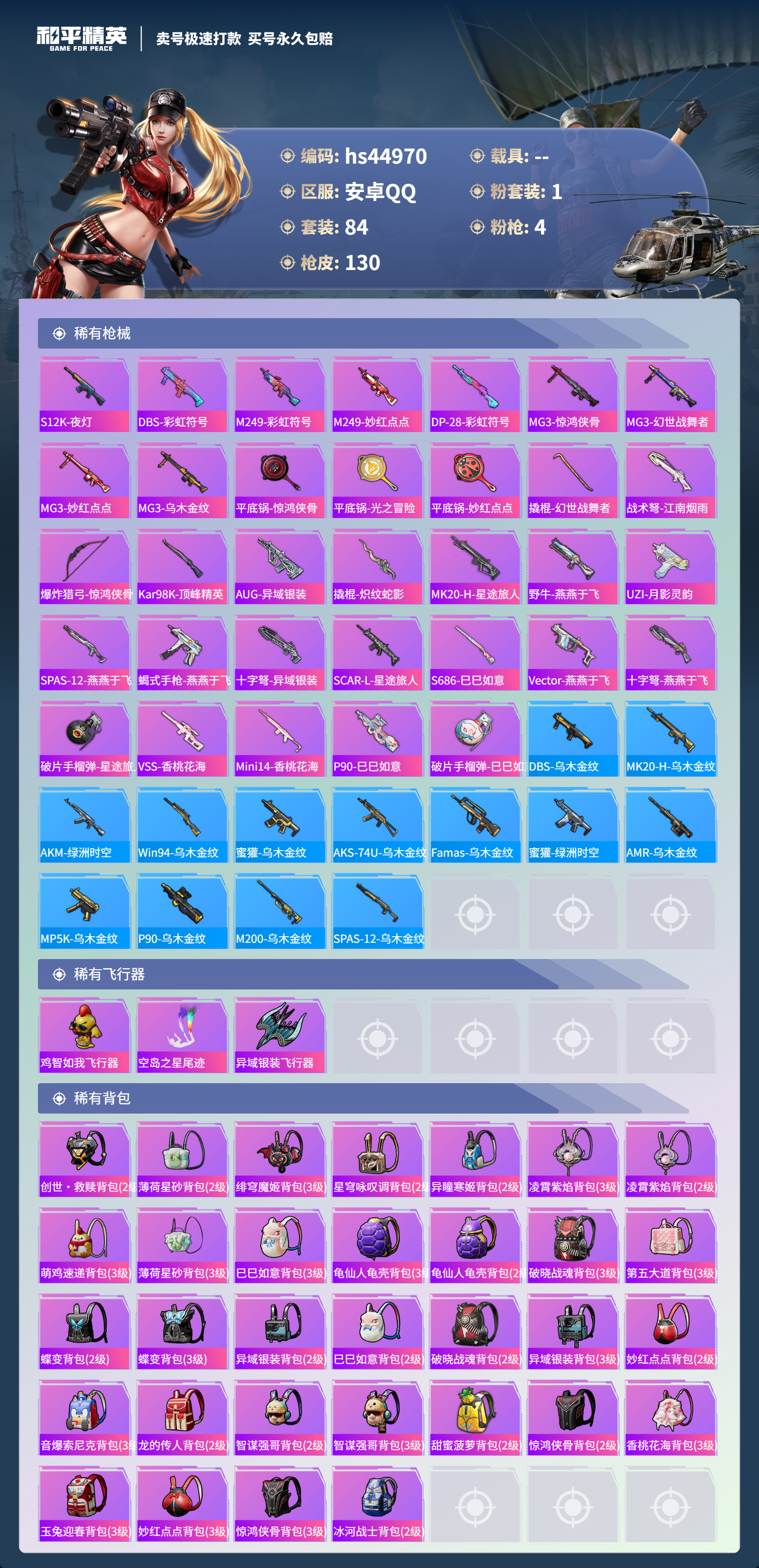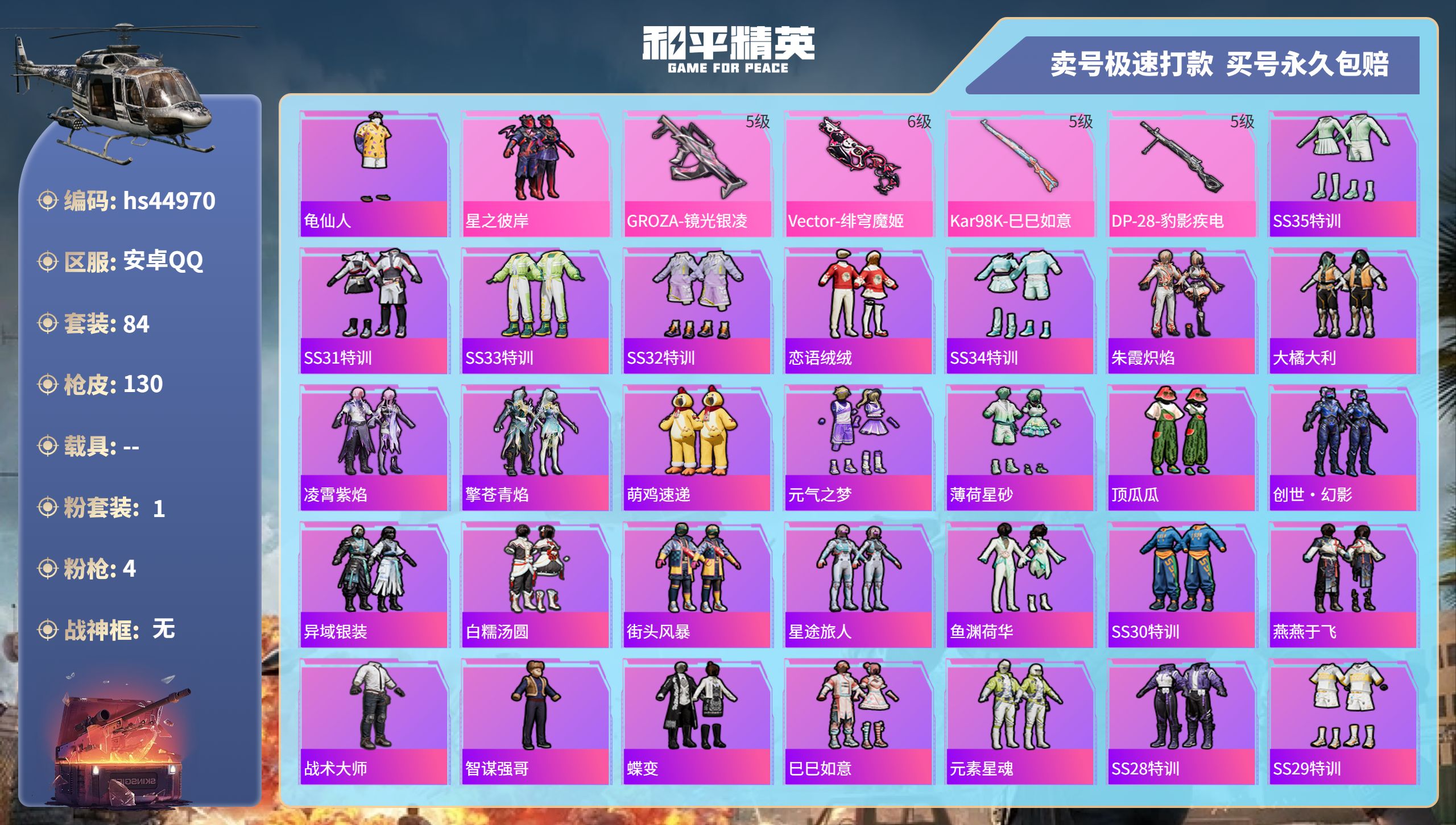 游戏区服:和平精英 / 安卓系统 / QQ账号