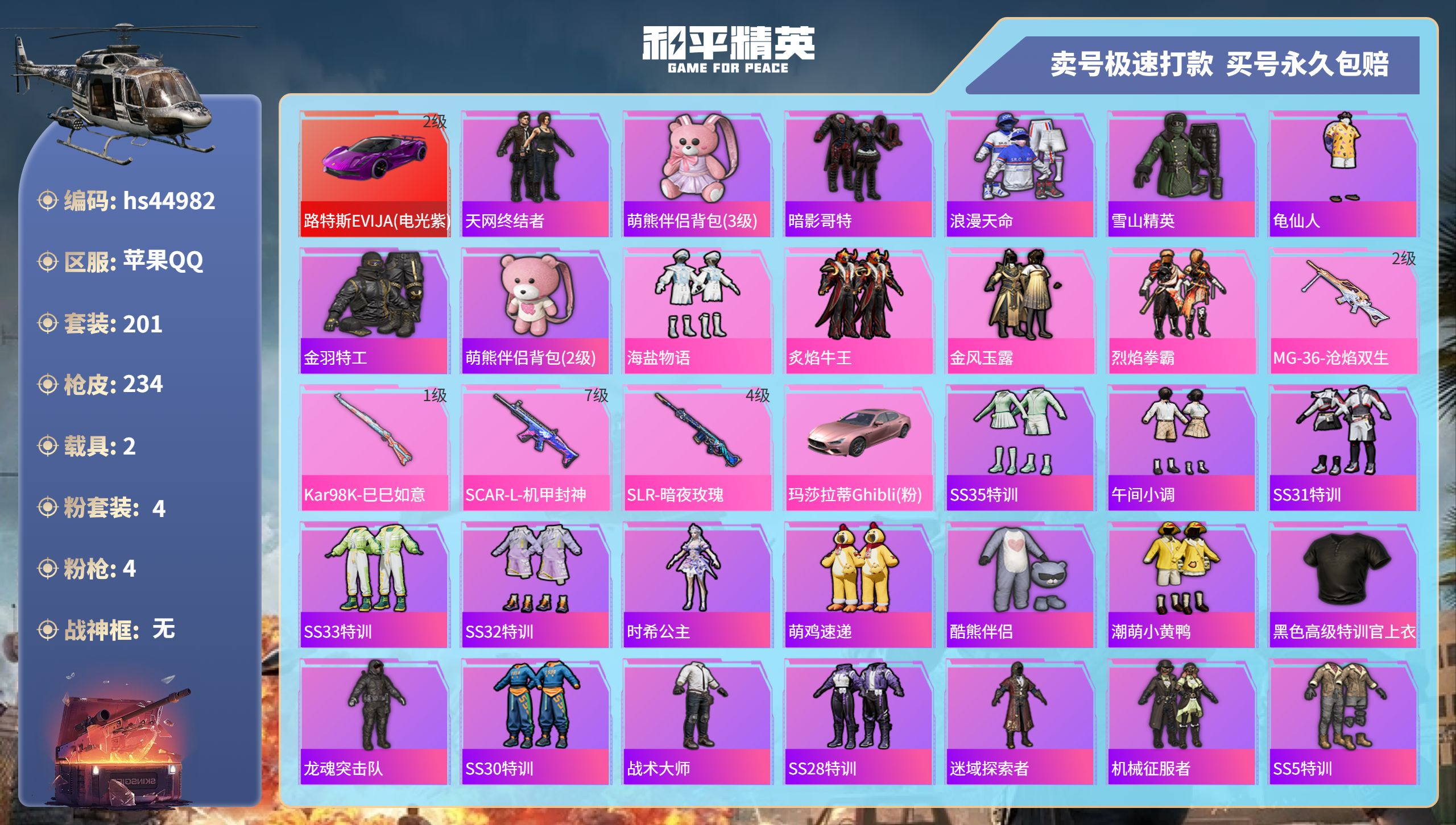 【11017888】【不可二次】【苹果QQ】路特斯EV紫色 龟仙人 漫步者 粉甜马卡龙 迪迦奥特曼 M762-奇异狩猎者 SCAR-L-机甲封神 海盐物语 恶魔人蛛 瑞龙福将 激萌小黄鸭 抹茶蜜豆 醒狮腾龙 浪漫天命 团圆交子 VSS-烈焰拳霸 M762-瑞龙福将 潮萌小黄鸭 黑色刀锋 SCAR-机甲封神 金羽特工 诡面顽熊 金风玉露 烈焰拳霸 酷熊伴侣 AKM-百万伏特 AUG-魔法学院 粉红