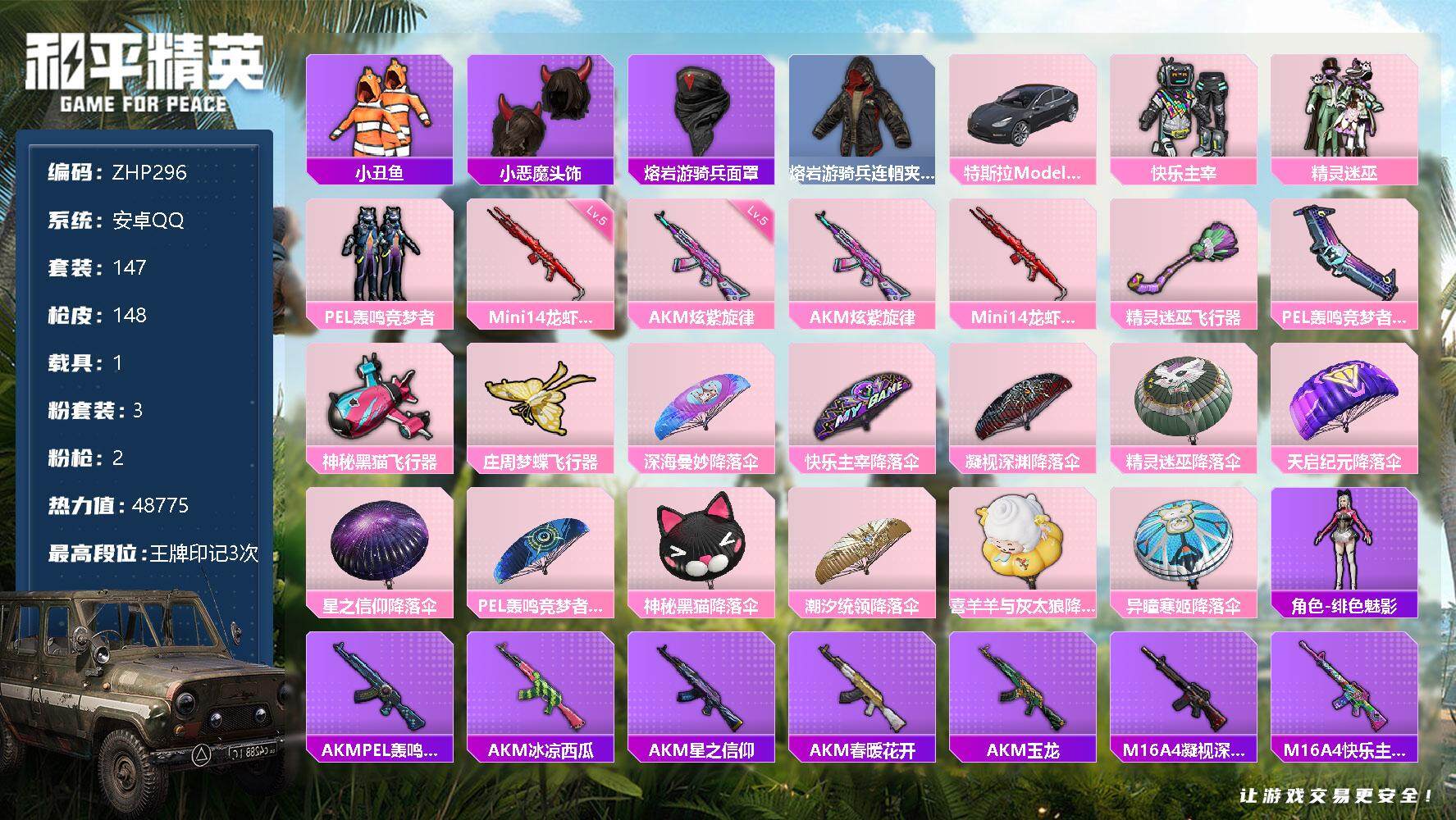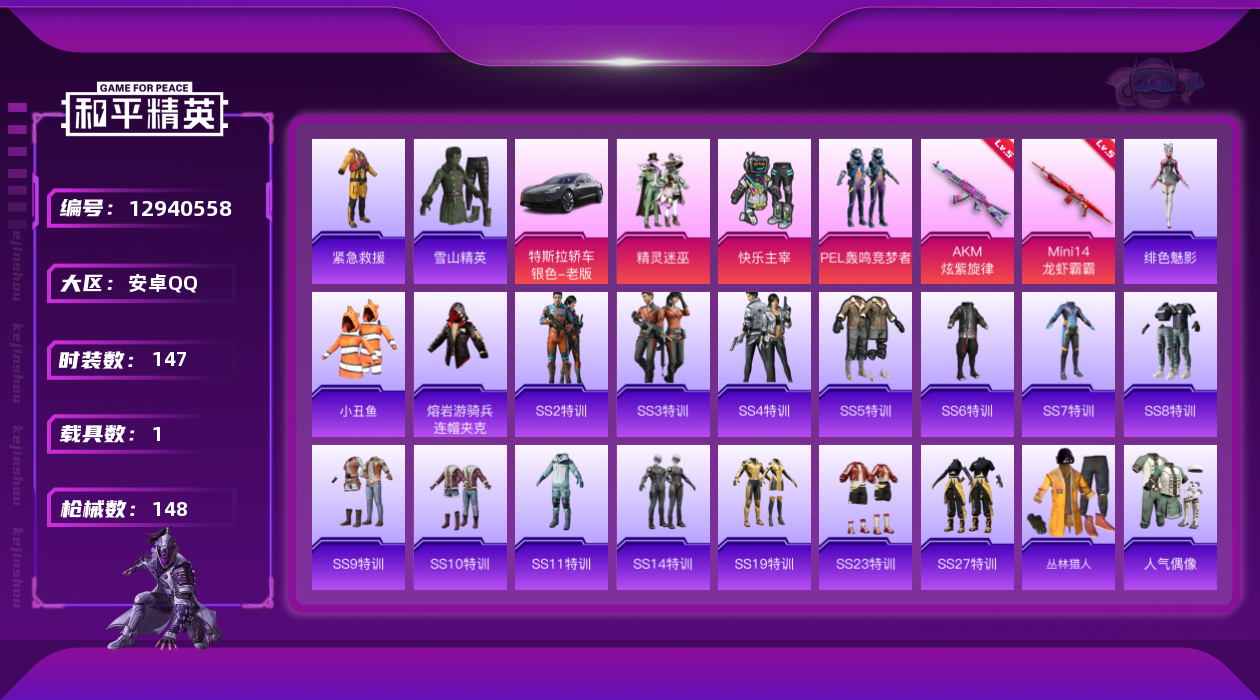 【11019898】【可二次】【安卓QQ】AKM-炫紫旋律 快乐主宰 Mini14-龙虾霸霸 精灵迷巫 PEL轰鸣竞梦者