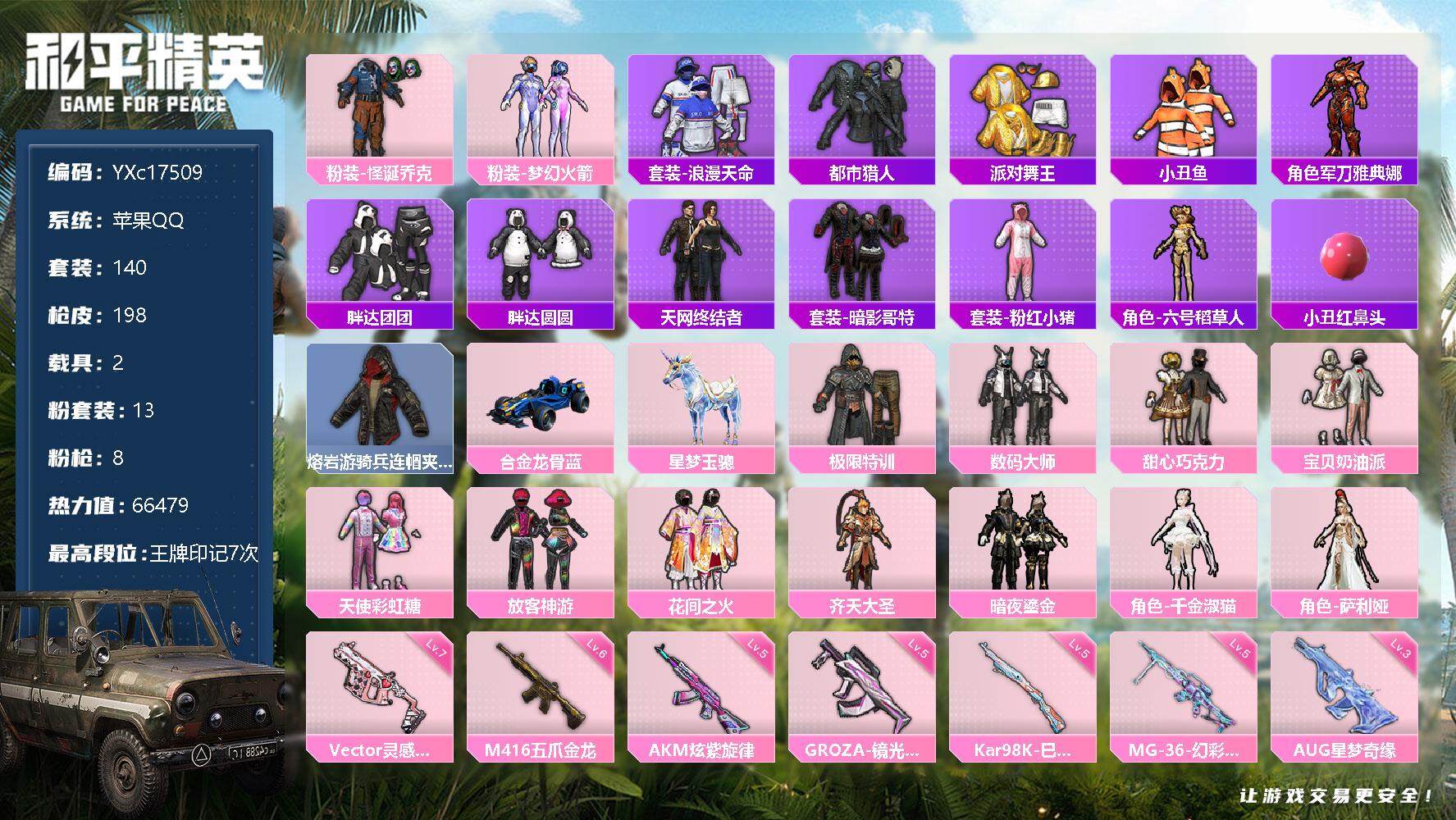 【11019959】【可二次】【苹果QQ】合金龙骨蓝色 梦幻火箭降落伞 水银刺客 大橘为重 M416-五爪金龙 漫步者 花间之火 都市猎人 极限特训 暗夜鎏金降落伞 豚鼠丹丹 庄周梦蝶飞行器 碧影闪光降落伞 放客神游 第五大道降落伞 海渊国主降落伞 瑞龙福将 浪漫天命 胖达团团 胖达圆圆 团圆交子 星梦玉骢 怪诞乔克 M762-瑞龙福将 花间之火降落伞 甜心巧克力 狂沙舞者 齐天大圣 AKM-炫