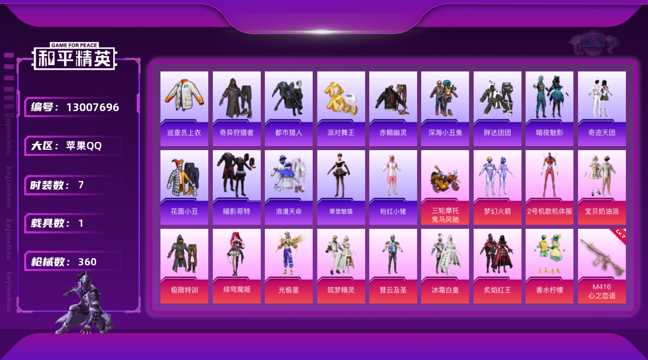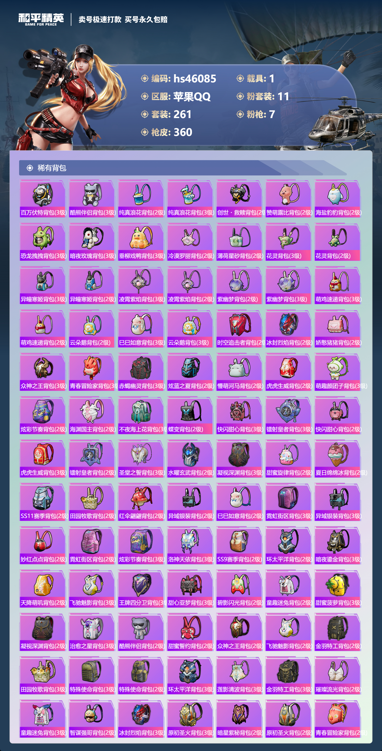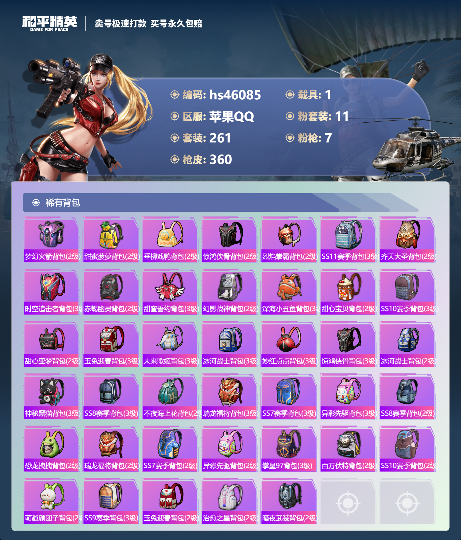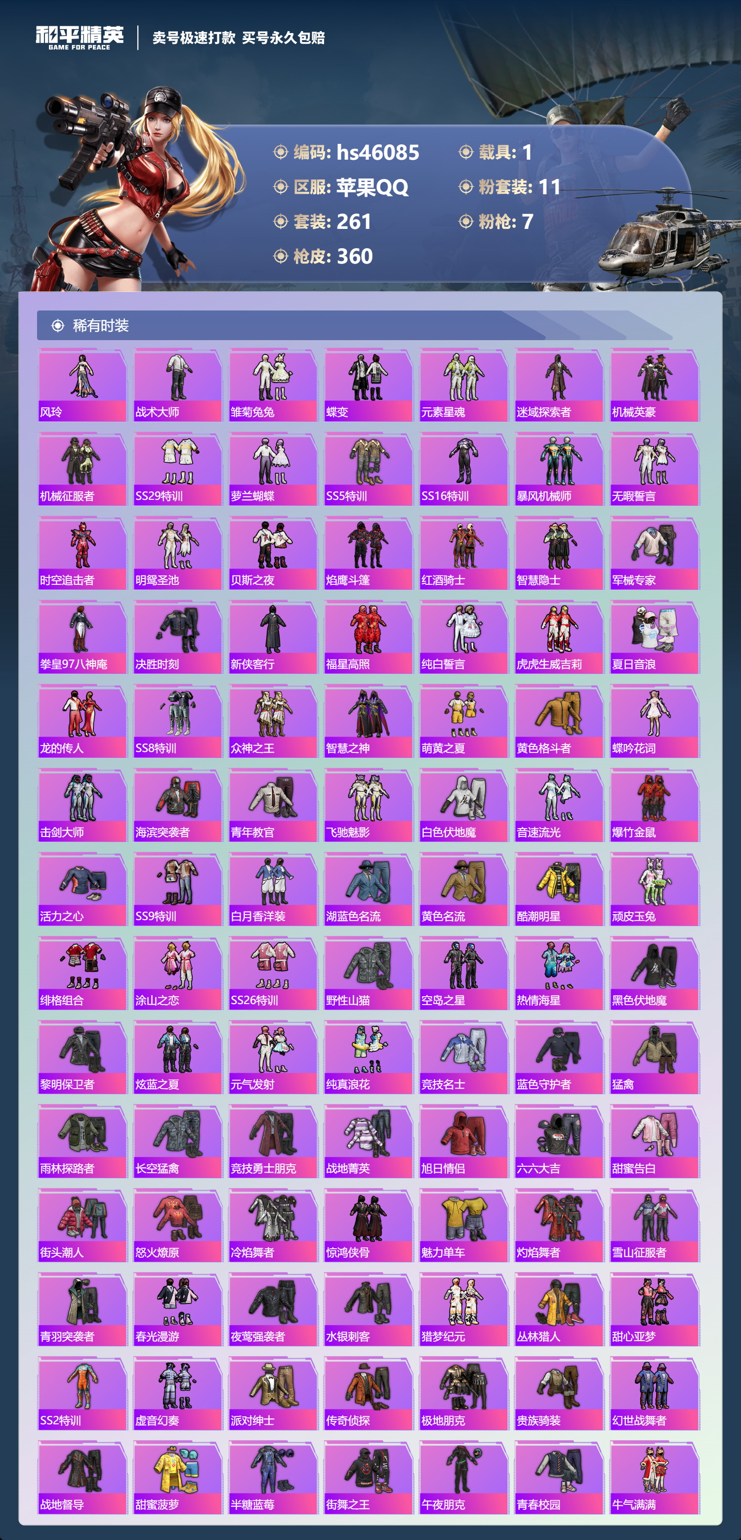 【11032268】【不可二次】【苹果QQ】水银刺客 大橘为重 M416-星际漫游 都市猎人 炎氏战神飞行翼 M762-奇异狩猎者 繁花小夜曲飞行翼 M416-仓鼠灰灰 M416-心之恋语 深海小丑鱼 SCAR-童趣迷兔 AWM-黄金龙骨 镜光幻境飞行翼 纯白誓言 SS1特训 M762-瑞龙福将 齐天大圣飞行器 新侠客行 狂沙舞者 金羽特工 香水柠檬 白月香洋装 AKM-梦之光华 彗云及圣 红螳