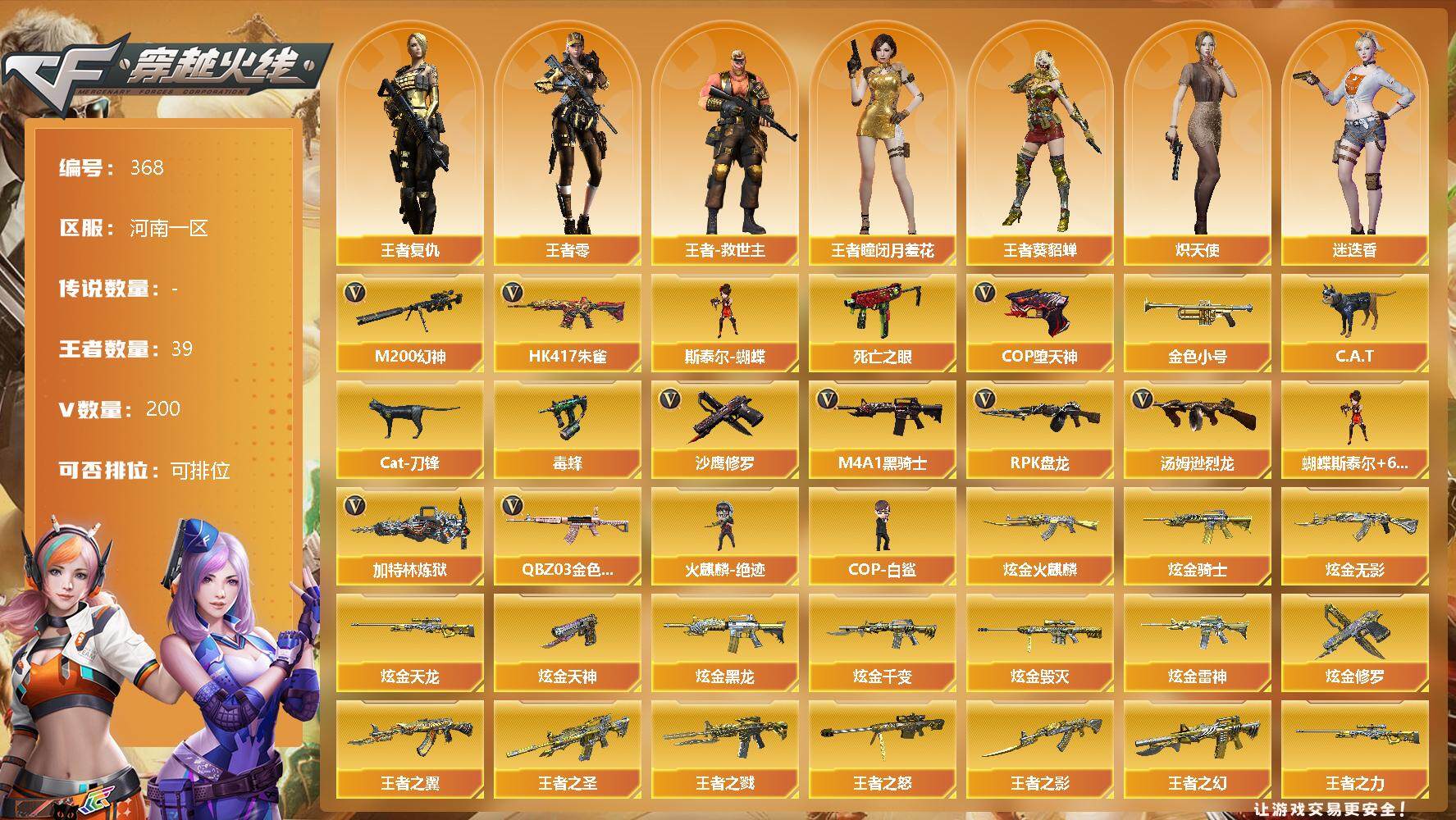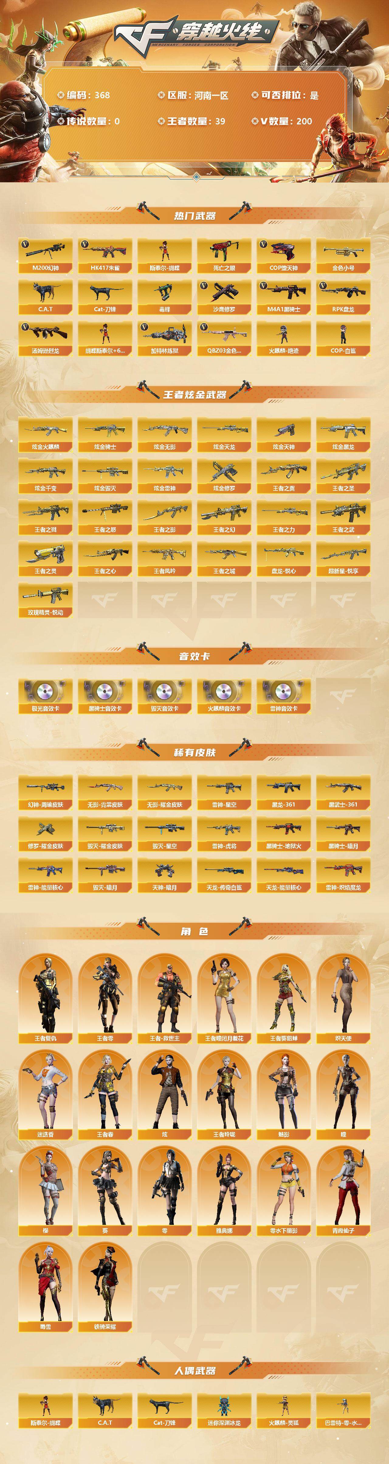 【11038830】【11038830】[13036919]【368】193V/102级/荣耀元首/39王者/15炫金/7英雄/QBZ03-金色蔷薇/HK41