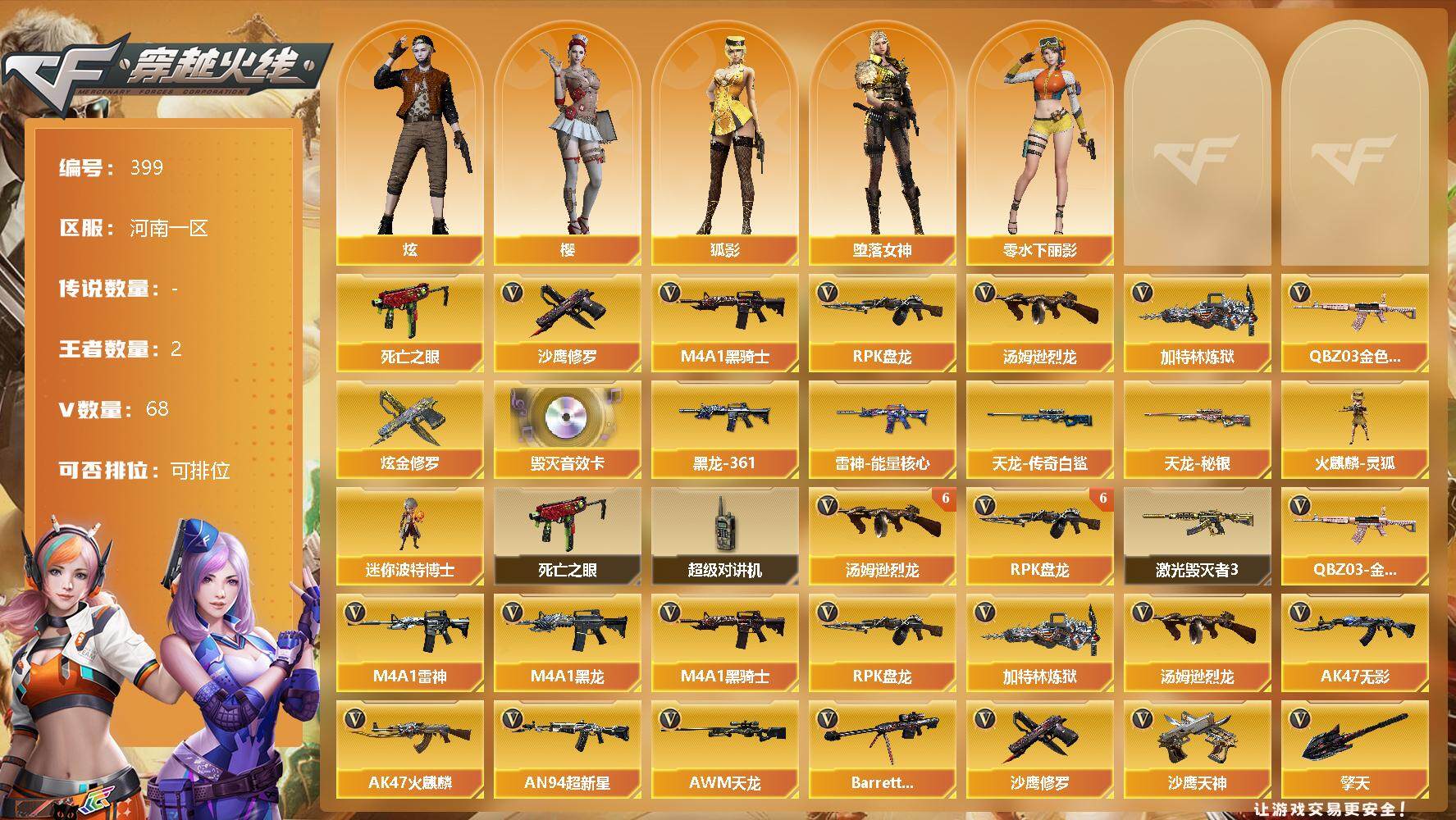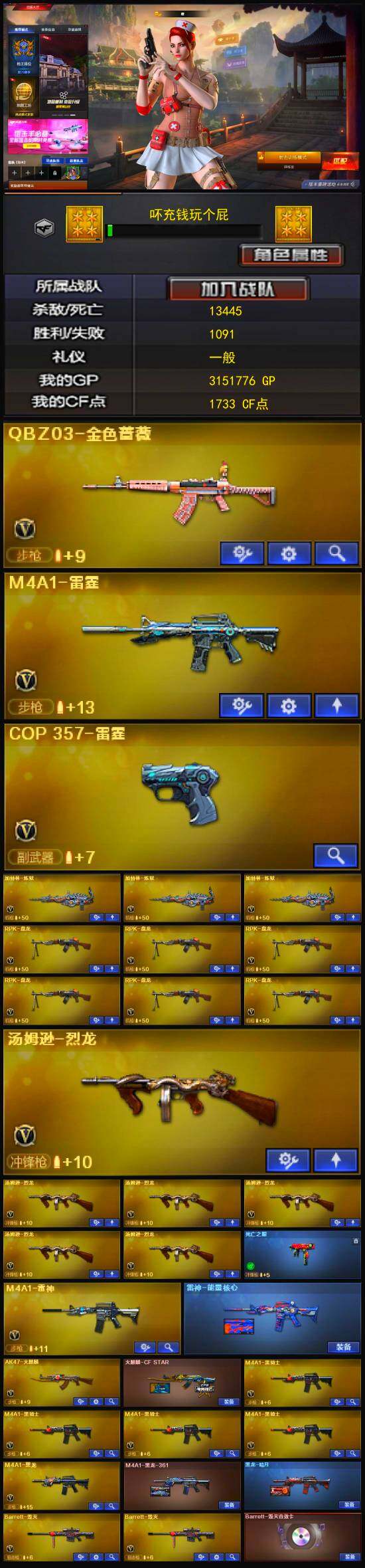 【11038877】【11038877】[13037135]【399】66V/98级/将帅/2王者/1炫金/2英雄/QBZ03-金色蔷薇/死亡之眼/M4A1-