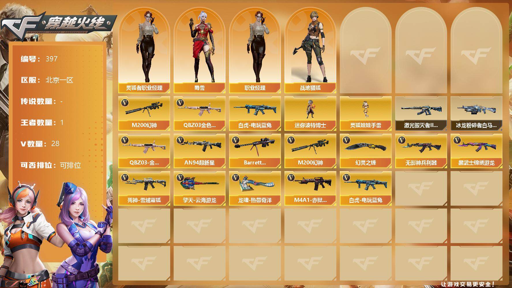 【11038896】【11038896】[13037104]【397】26V/91级/将帅/1王者/2英雄/QBZ03-金色蔷薇/M200-幻神/白虎-电玩蓝
