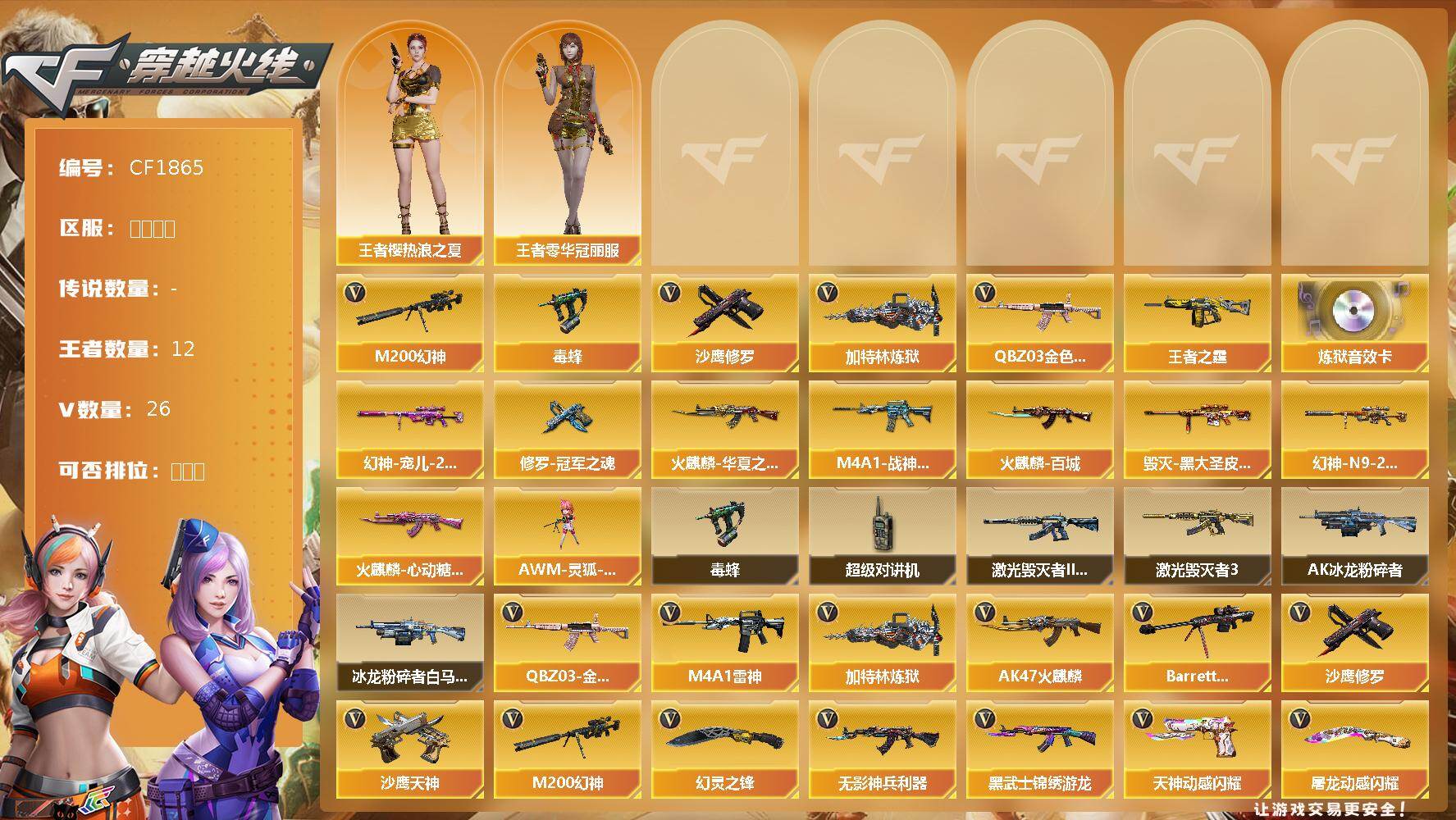 【11041066】【11041066】[13051863]黑龙江区-26V-12王者-0炫金【幻神2皮】【毒蜂】【M200-幻神】【幻神-宠儿-2021MV