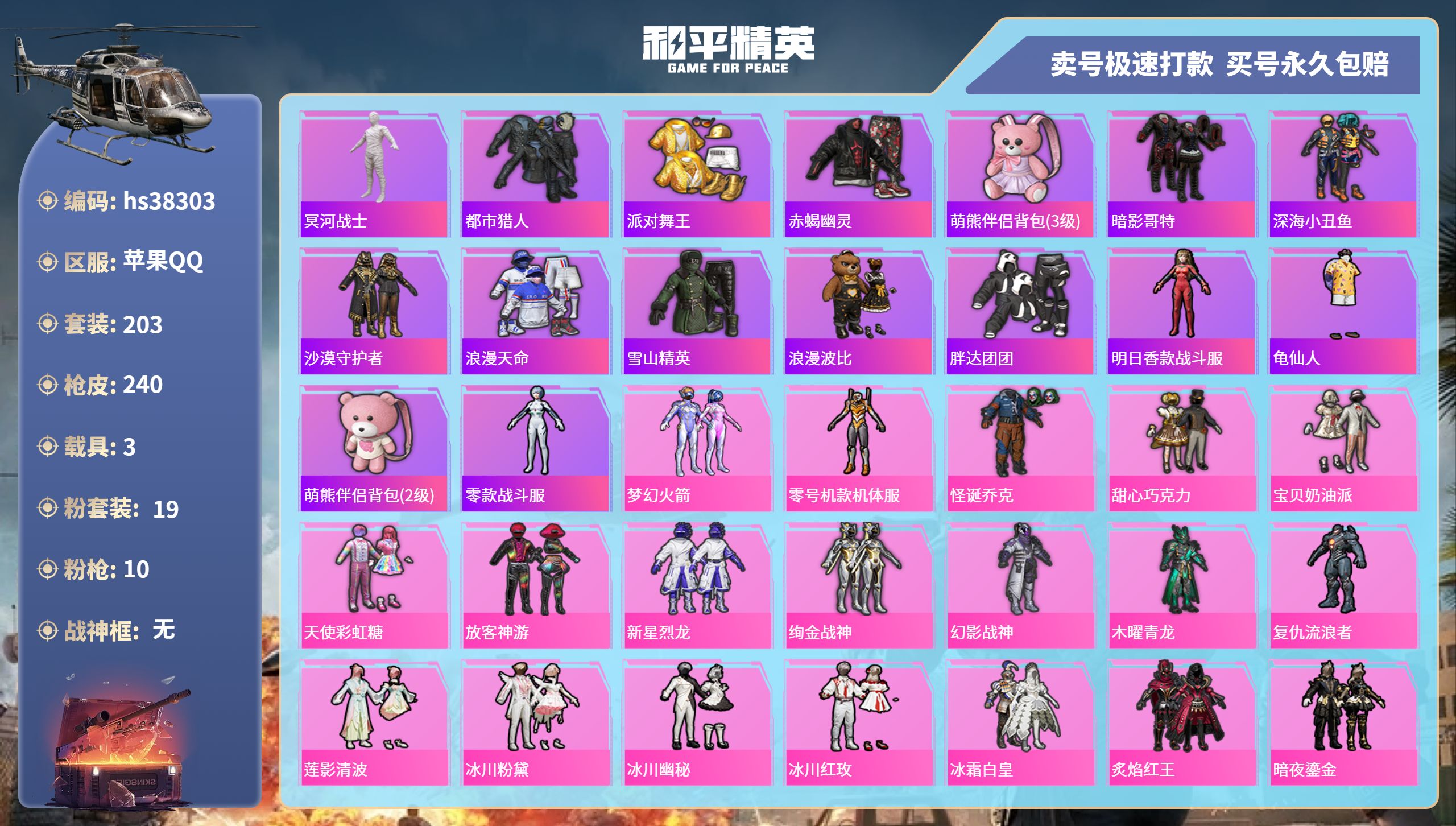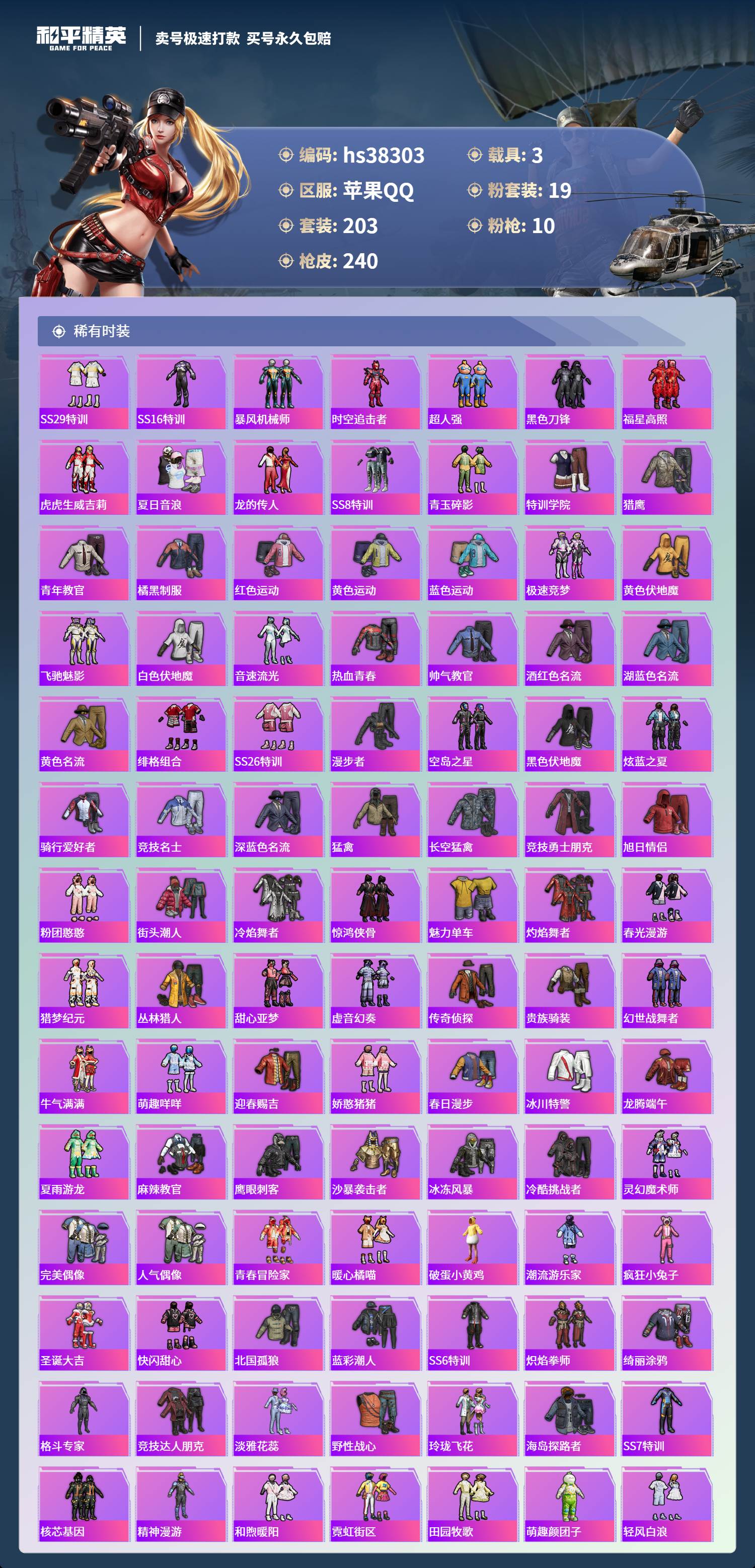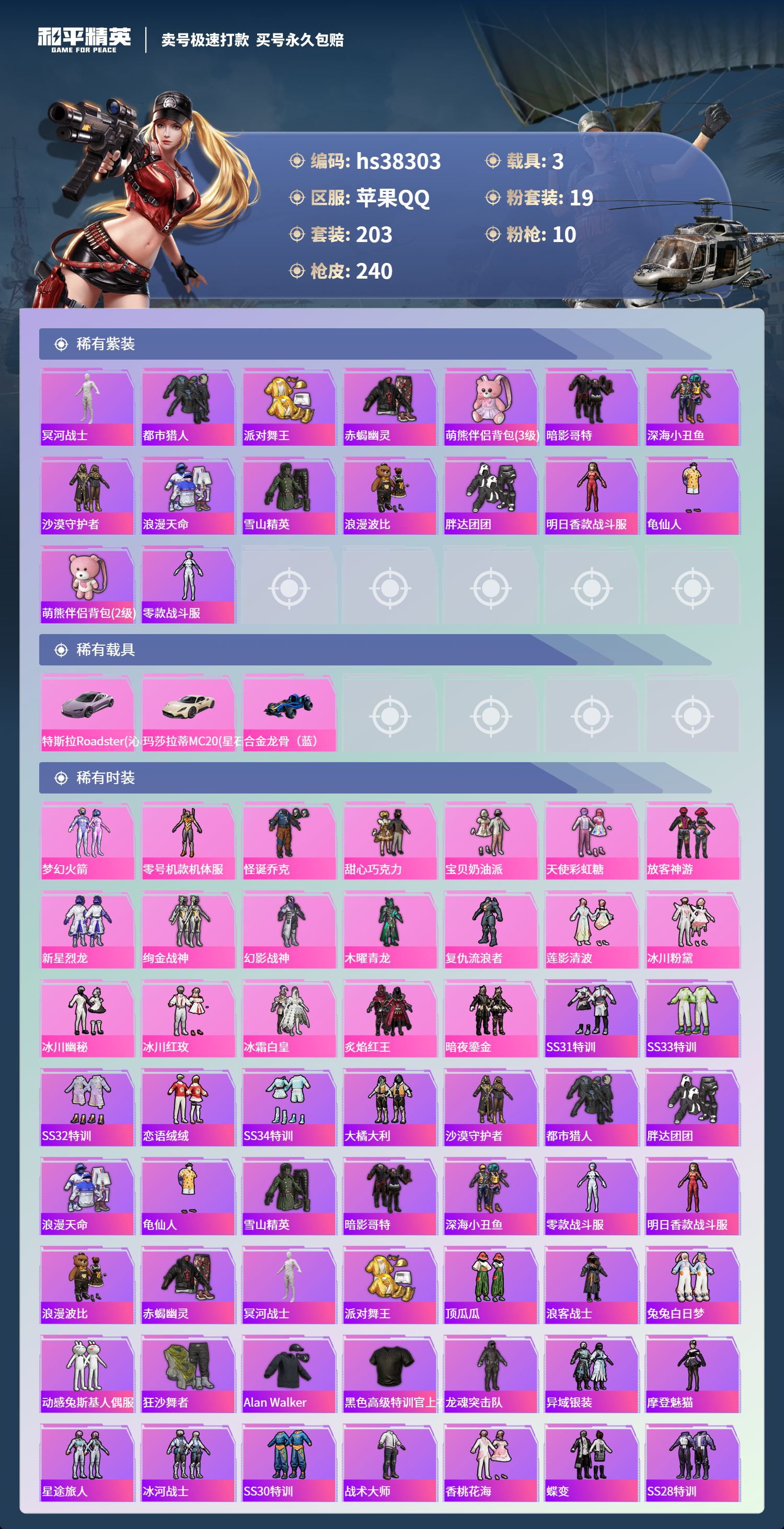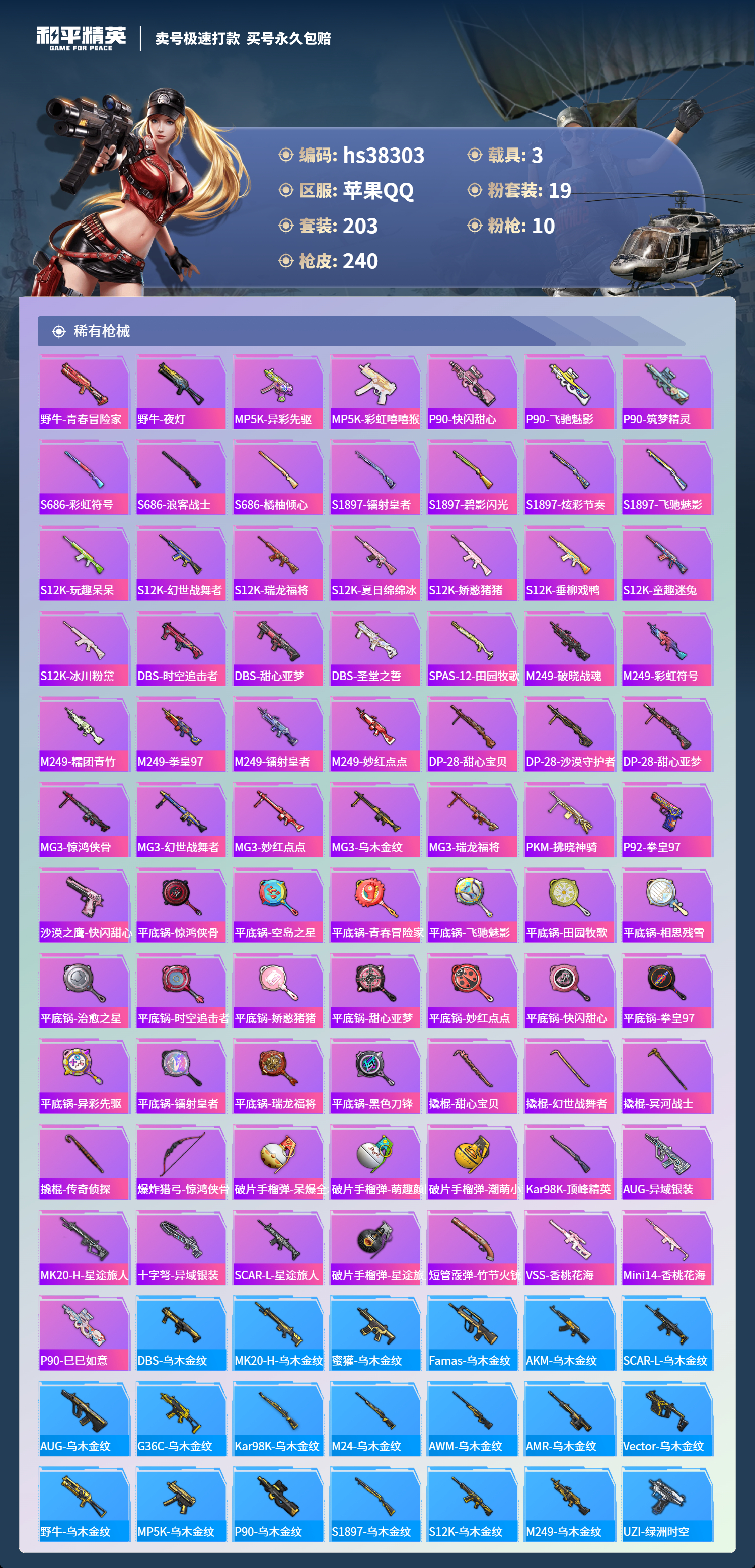 【11050489】【不可二次】【苹果QQ】合金龙骨蓝色 M762-甜蜜誓约 龟仙人 漫步者 都市猎人 木耀青龙 M416-至情至圣 黄螳螂 深海小丑鱼 浪漫波比 SCAR-童趣迷兔 AKM-甜心宝贝 AKM-奇异狩猎者 相思残雪飞行器 怪诞乔克 M762-瑞龙福将 齐天大圣飞行器 黑色刀锋 特斯拉R沁心粉 狂沙舞者 AKM-梦之光华 UMP45-相思残雪 木乃伊 木曜青龙 M416-五爪金龙
