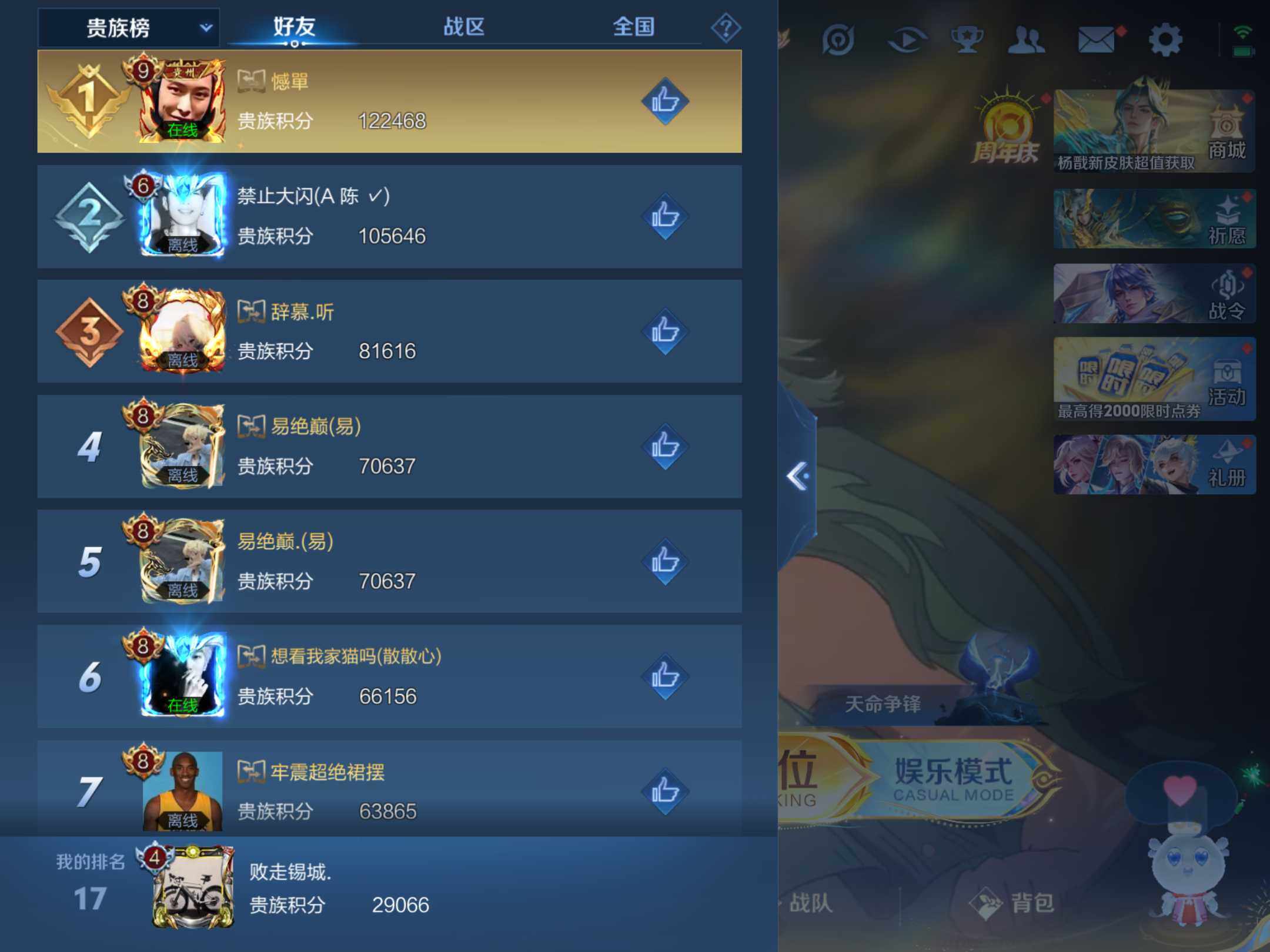 游戏区服:王者荣耀 / 苹果系统 / QQ帐号