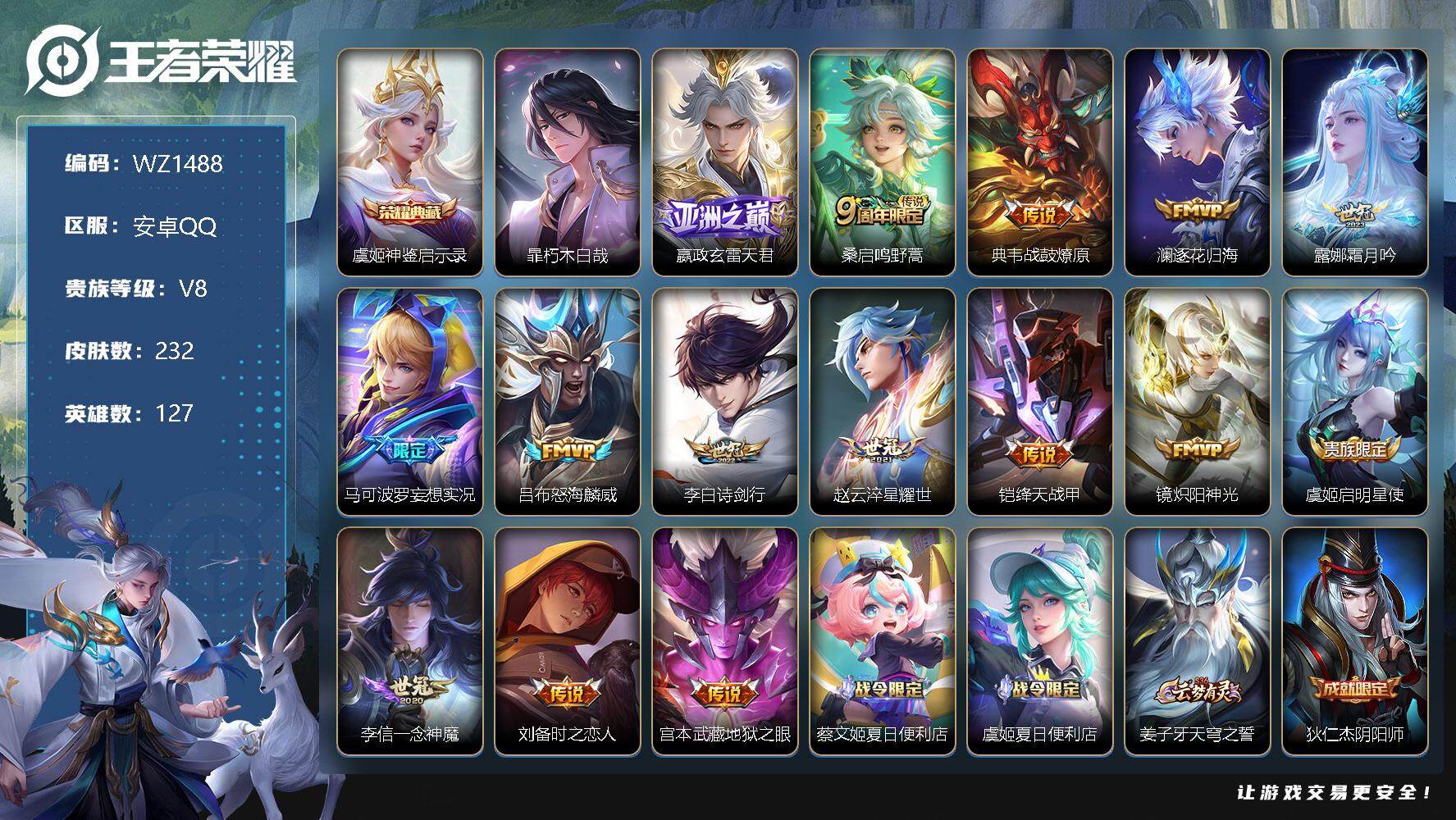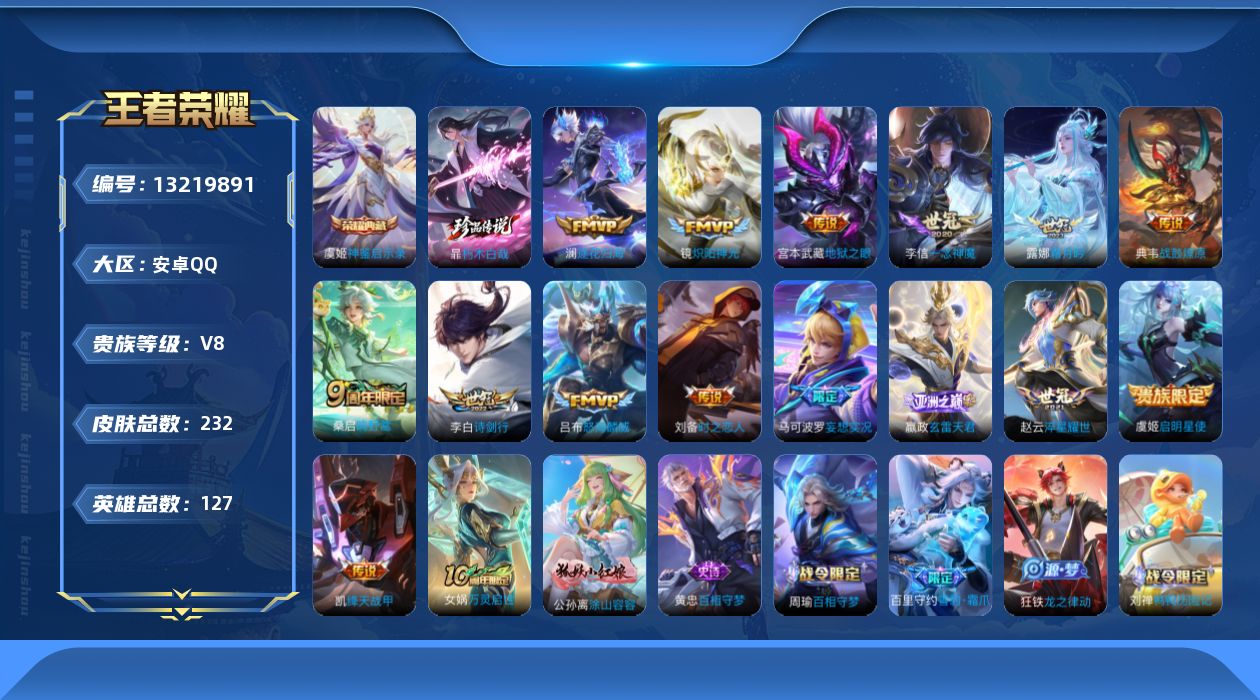 游戏区服:王者荣耀 / 安卓系统 / QQ账号