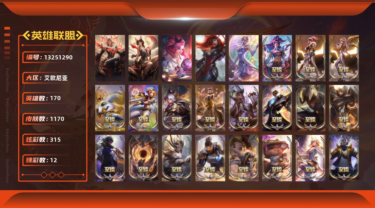 【11089363】[13251290]t23906【艾欧尼亚】联盟不朽阿狸_ 殿堂传奇阿狸 绿龙瞎 1170皮肤 315炫彩 12臻彩 54神话/225限定/106传说/170英雄 账号等级:359 云顶神话:1 【重要头像】爱意绵绵 爱情之歌 心型钥匙 觅心游侠卢锡安 觅心之翼奎因 萨勒芬妮超级巨星 萨勒芬妮独立音乐人 我麦是开的么 魔女丽桑卓炫彩 青花瓷拉克丝 击拳 救生圈 KDA卡莎BA