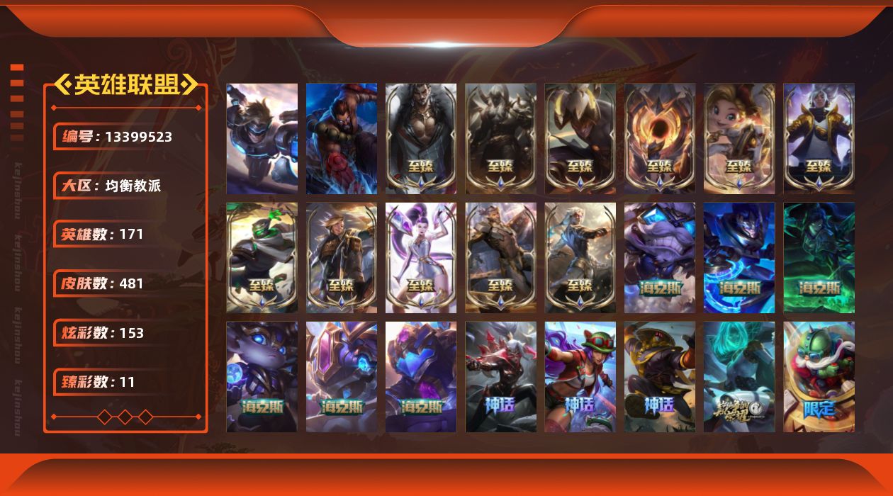 【11123665】[13399523]t29668【均衡教派】481皮肤 153炫彩 11臻彩 25神话/53限定/44传说/171英雄 账号等级:848 单双排段位:铂金【重要头像】大家伙 KDA萨勒芬妮 此志无双羽饰骑士 不错哦 至臻KDA卡莎 至臻奥术师佐伊 【重要皮肤】狼神英灵斯维因至臻 奥术师佐伊至臻 真实伤害亚索至臻 灵能特工伊泽瑞尔至臻 源计划逆流塞拉斯至臻