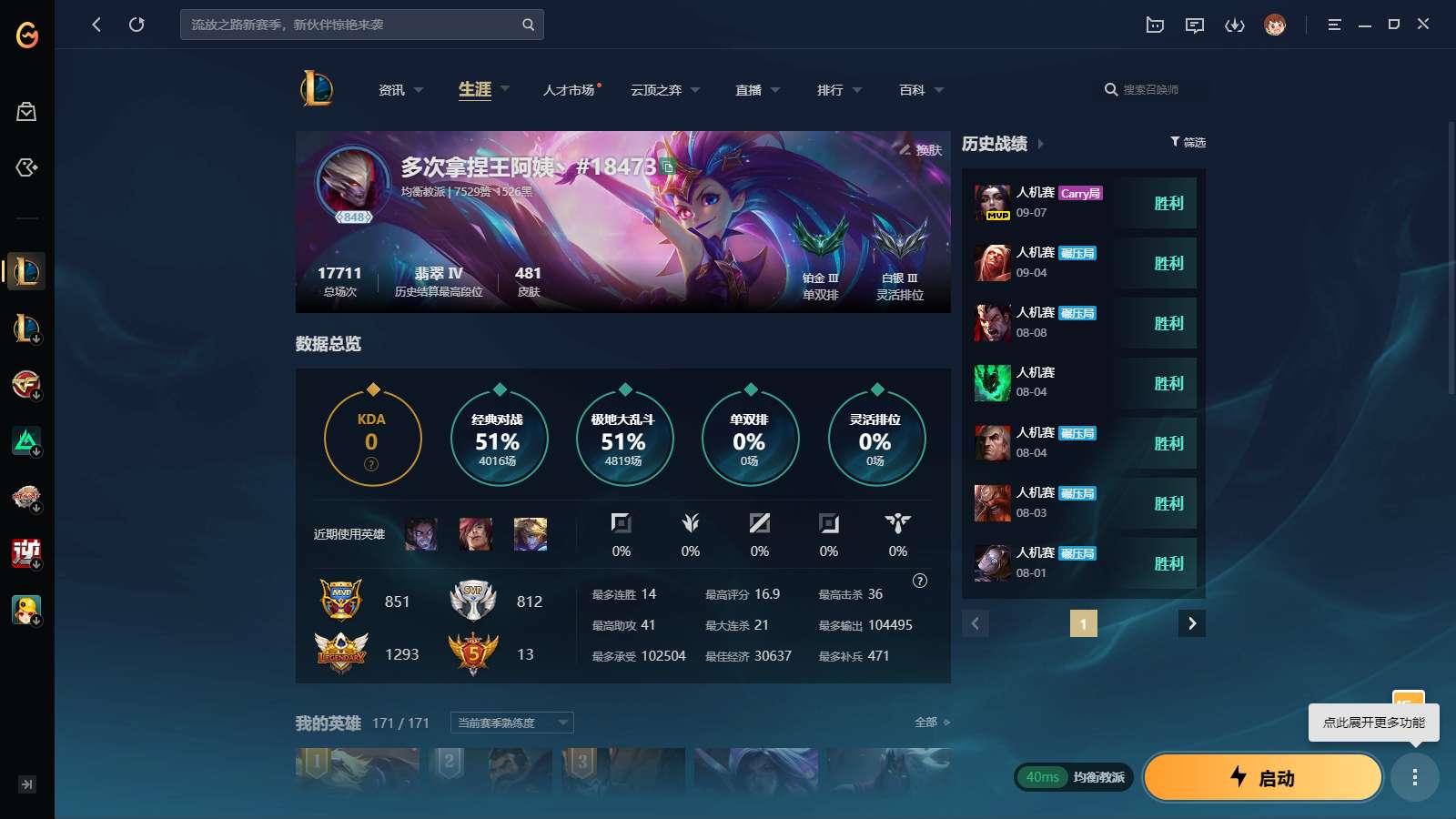 游戏区服:英雄联盟 / 电信 / 均衡教派