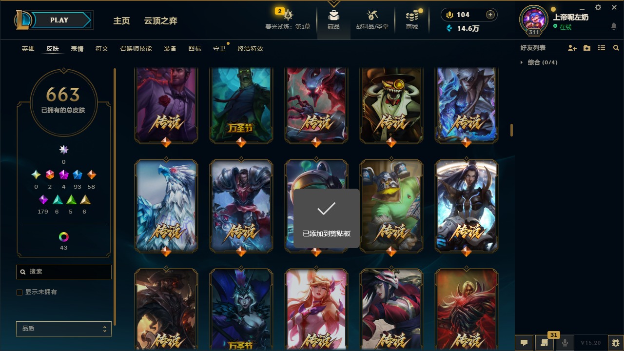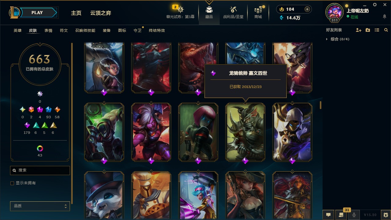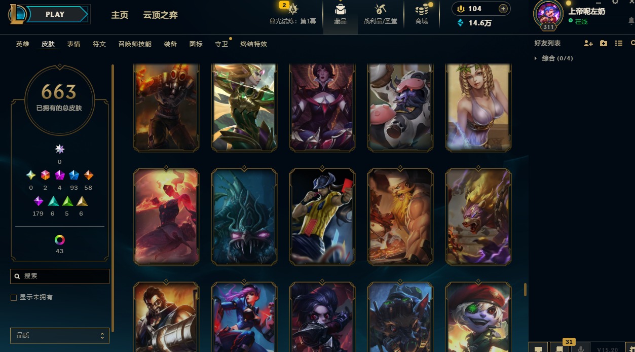 【11129299】[13422482]2终极 4神话 93限定 58传说 179史诗 663皮肤 70炫彩 171英雄 可二次 可修改实名 【至臻】:至臻 神凰行者 烈羽焰凰 霞 【限定】:穿星魔锋 赵信 【情人节限定】:觅心女王 艾希,觅心之翼 奎因,甜心宝贝 安妮,甜心宝贝 娑娜 【赛季限定皮】:胜利女神 希维尔,胜利之树 茂凯 【冠军限定系列】:S13 T1 李青,S1FNC 迦娜,S