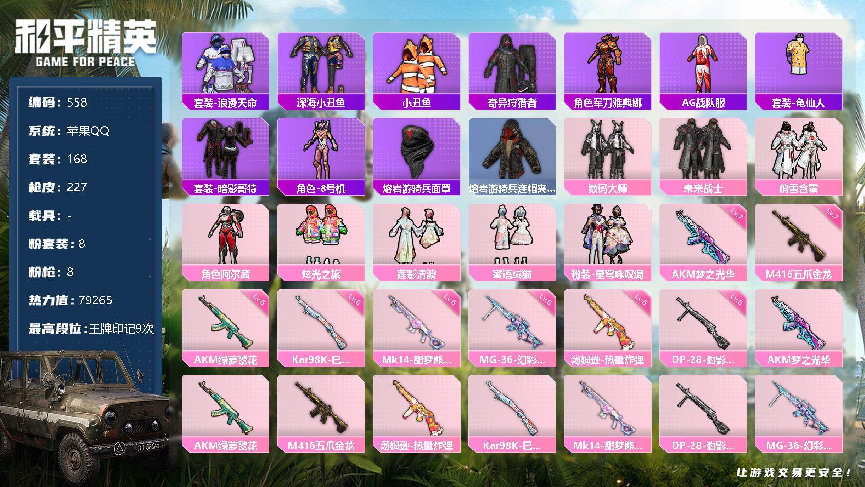 游戏区服:和平精英 / 苹果系统 / QQ帐号
