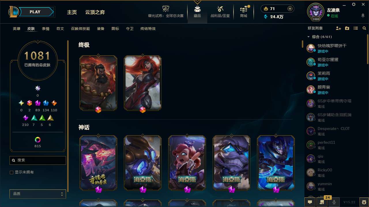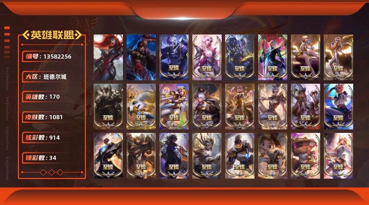 【11167275】[13582256]t30030 皇冠账号【班德尔城】红龙瞎 1081皮肤 914炫彩 34臻彩 89神话/134限定/110传说/170英雄 账号等级:1480 【重要头像】云顶星守阿卡丽 爱情之歌 觅心游侠卢锡安 雪花 小希 永恒之森霞 永恒之森霞炫彩 我麦是开的么 咖啡甜心布偶布罗 救生圈 KDA卡莎 KDA萨勒芬妮 星守卡莎 幻灵战斗队长厄运