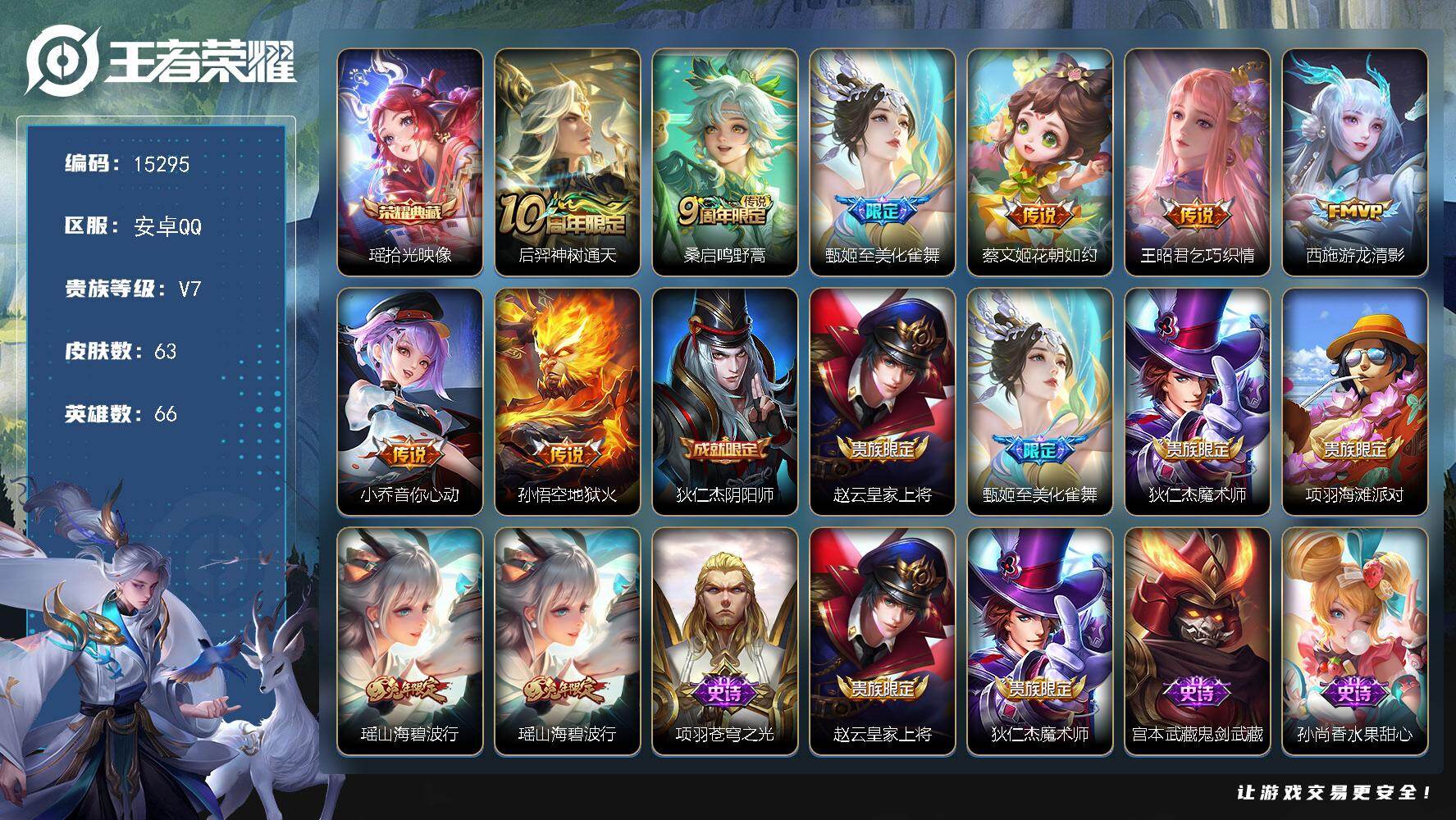 游戏区服:王者荣耀 / 安卓系统 / QQ账号