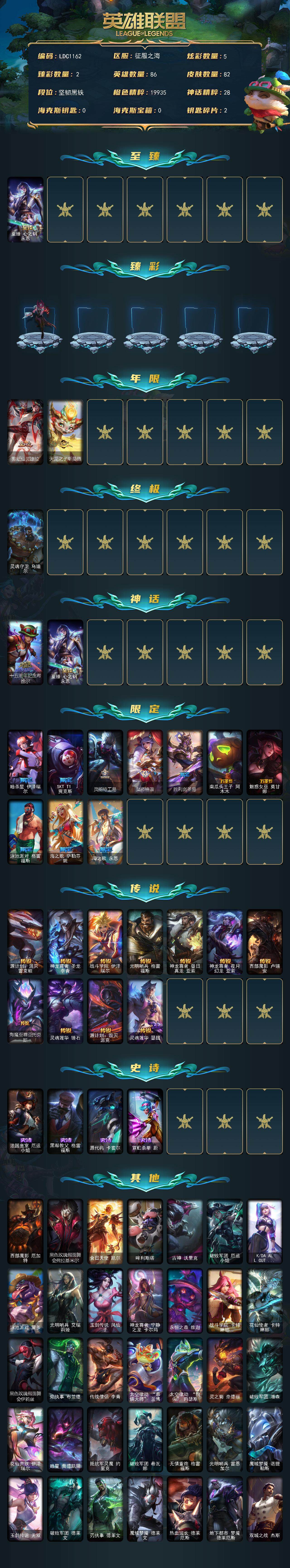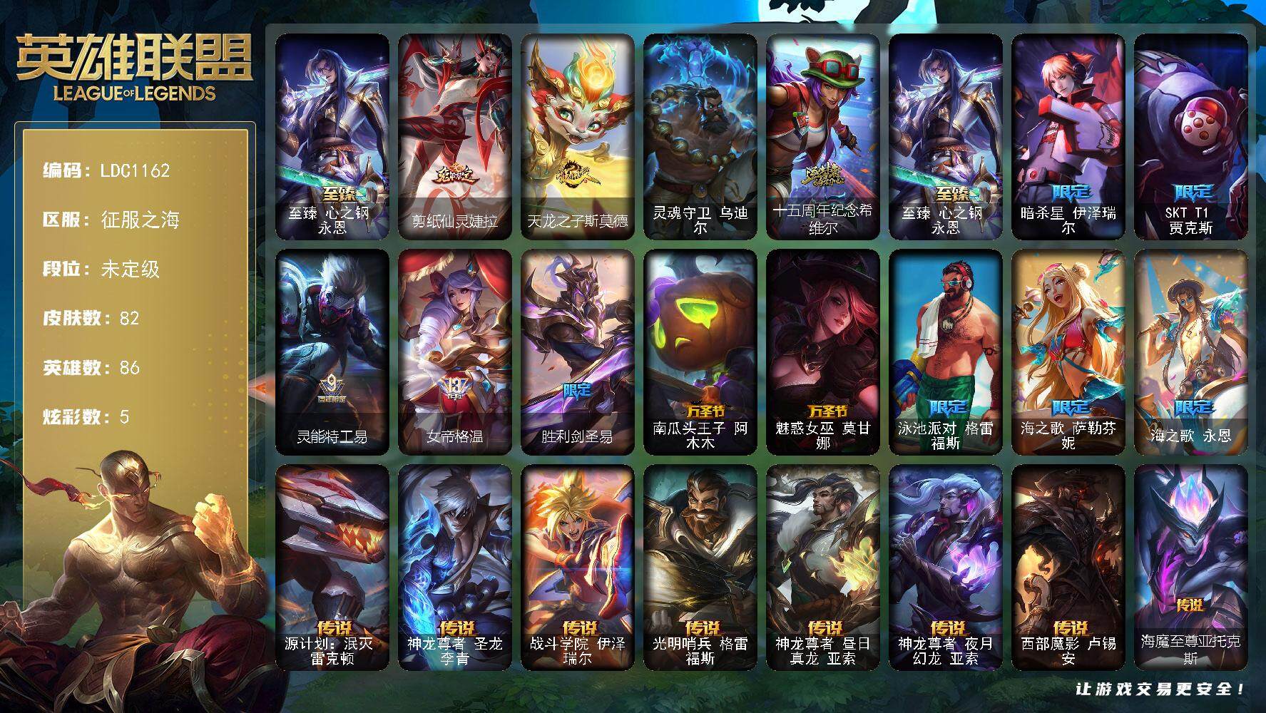 【6937】【LDC1162】86英雄/82皮肤/1终极/2神话/12限定/2臻彩/5炫彩/11传说/4史诗/未定级/至臻心之钢永恩/西部魔影卢锡安贝利尔之怠/战斗学院卡特琳娜盛典礼服/剪纸仙灵婕拉/天龙之子斯莫德/灵魂守卫乌迪尔/十五周年纪念希维尔/暗杀星伊泽瑞尔/SKTT1贾克斯/灵能特工易/女帝格温/胜利剑圣易/南瓜头王子阿木木/魅惑女巫莫甘娜/泳池派对格雷福斯/海之歌萨勒芬妮/海之歌永恩