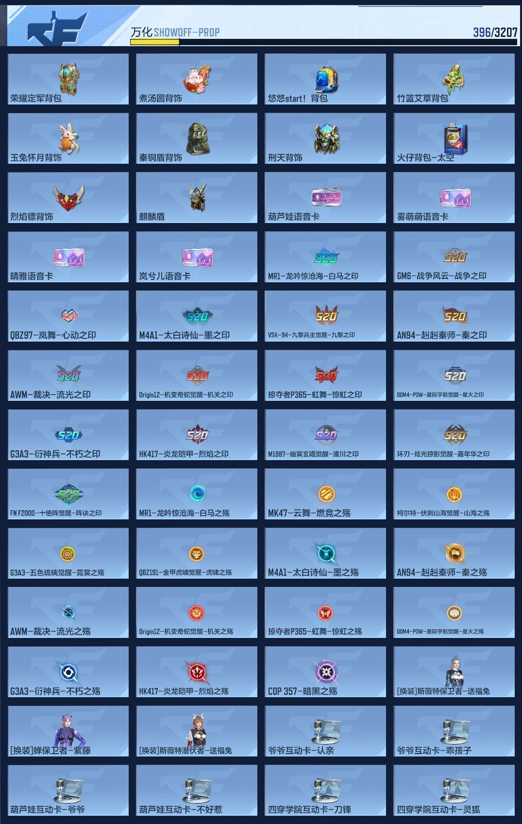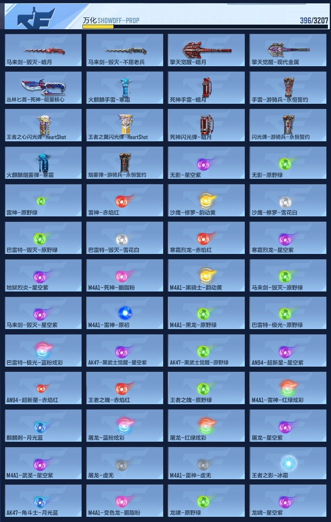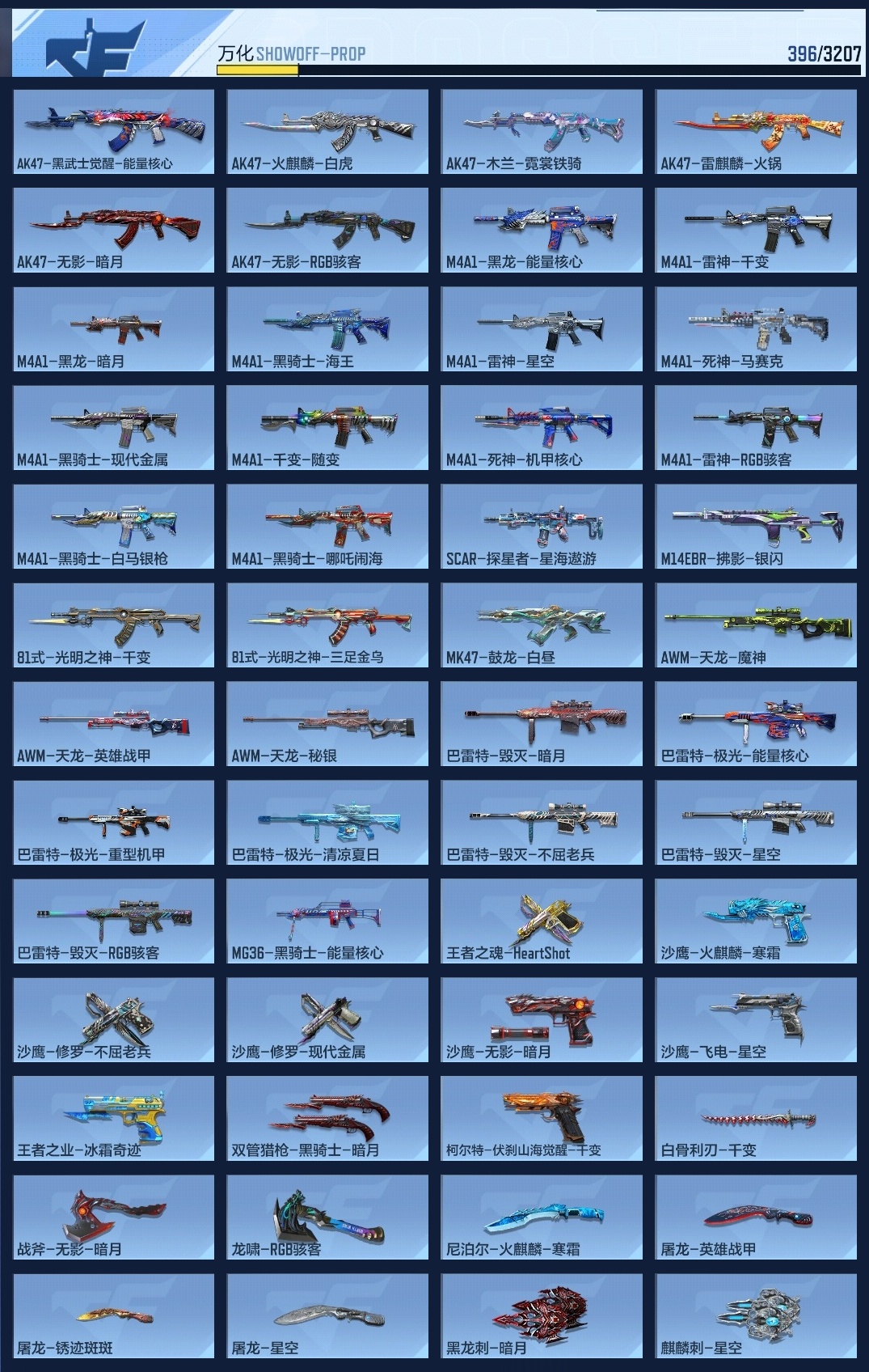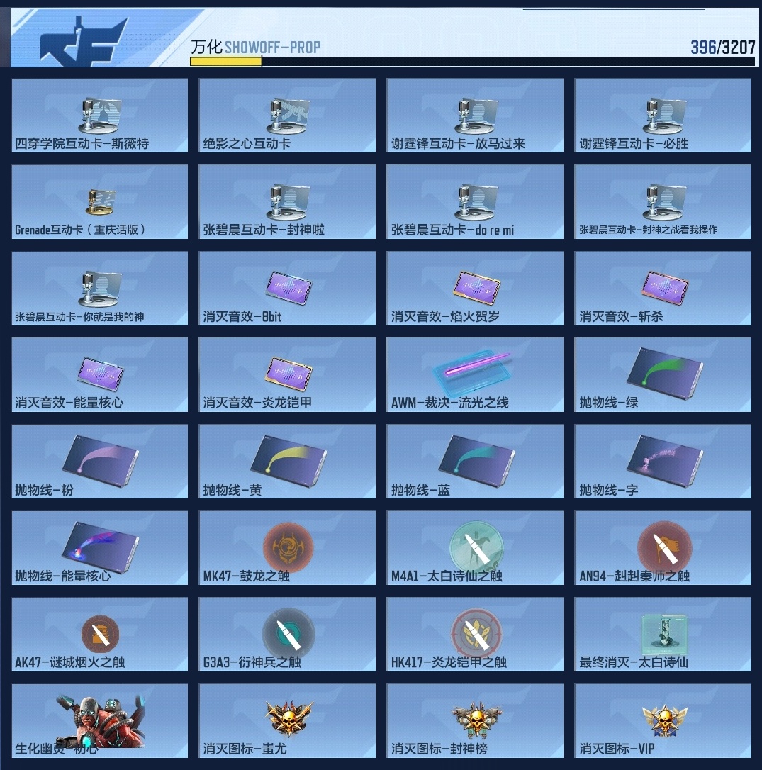 【15992】BZ641082 【特价11王者-2套王雷-元让套-盖-81光明-王心-王影-王霆】 王者V武器数量11 英雄武器数量229 万化数量396 音效卡6 狙击枪线1 消灭音效5 语音卡4 抛物线6 音效卡:王者之影-现代战场,王者之心-现代战场,AK47-无影-电音,巴雷特-毁灭-现代战场,MK47-鼓龙-嘴炮,M4A1-雷神-电音; 狙击枪线:AWM-裁决-流光之线; 消灭音效:消