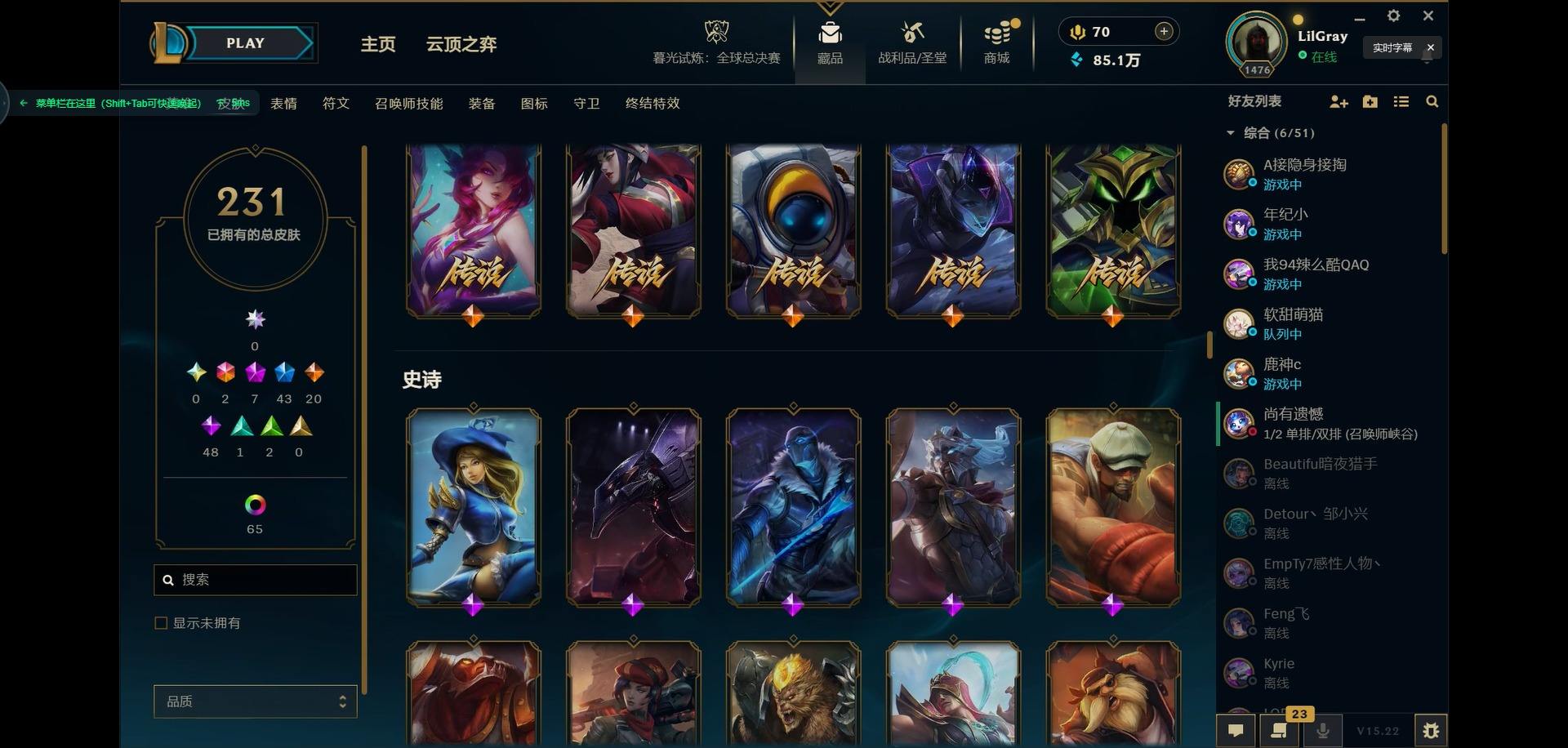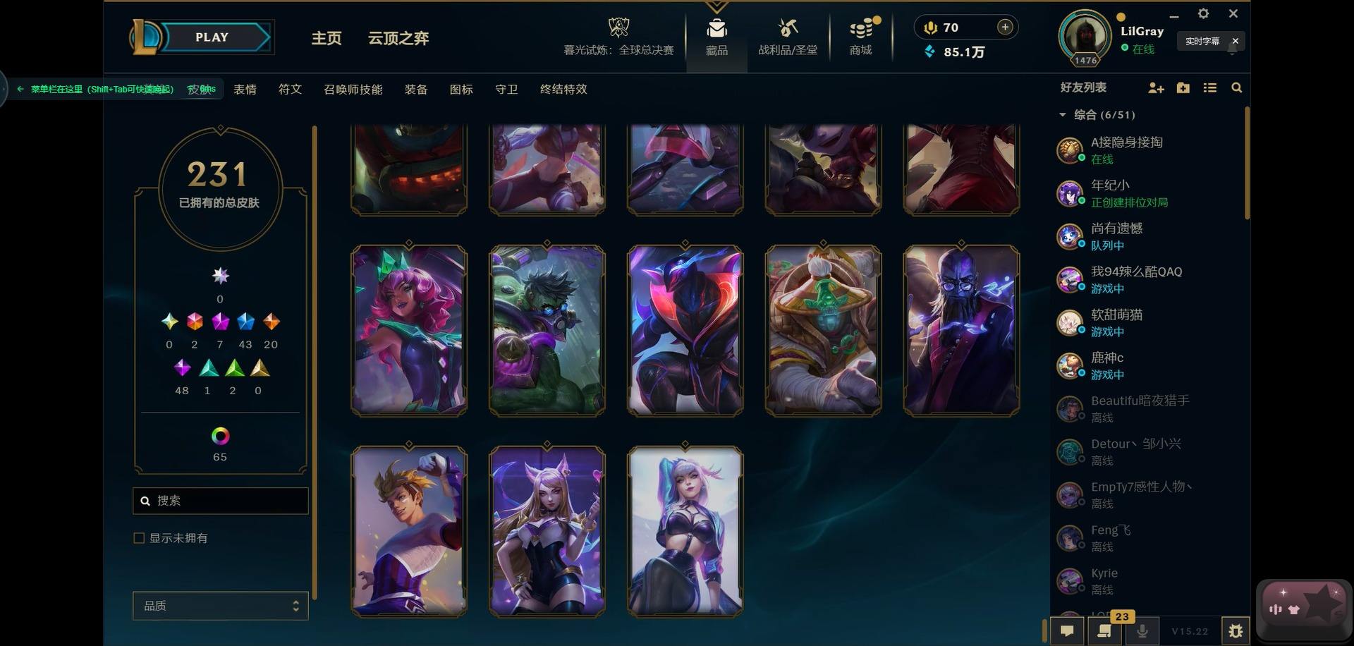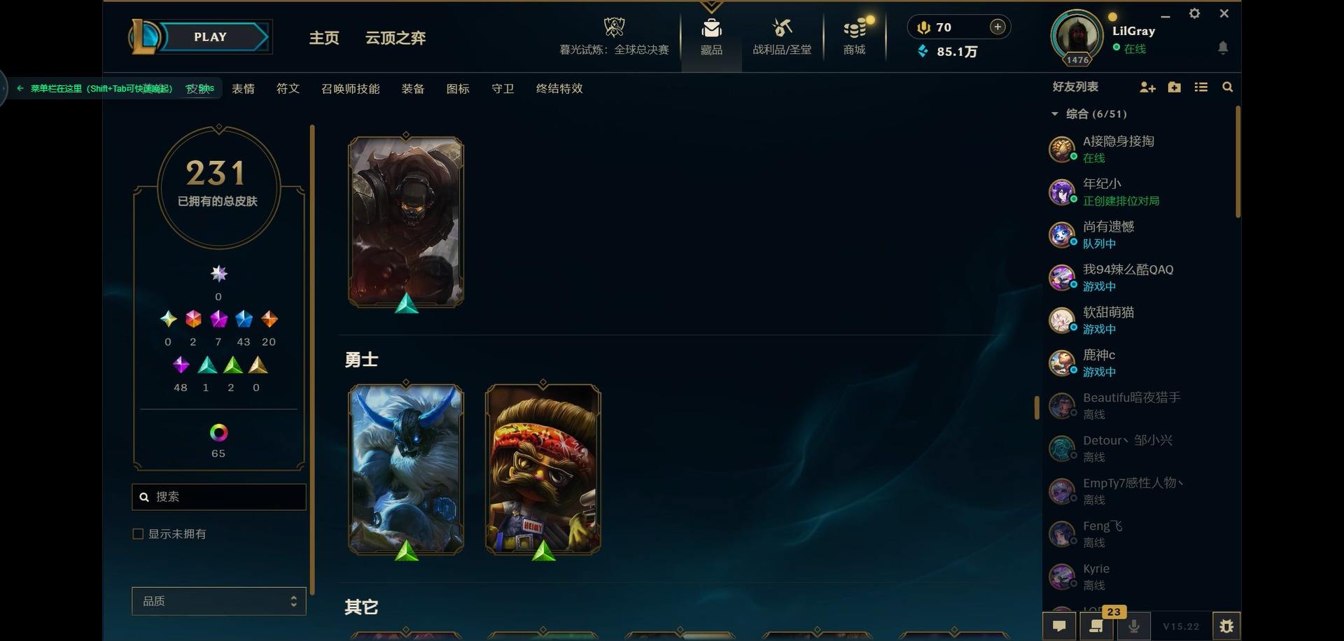 【18144】[13766741]2终极 7神话 43限定 20传说 48史诗 231皮肤 83炫彩 171英雄 可二次 可修改实名 【海克斯】:海克斯 嘉文四世,恐惧新星 德莱厄斯,摄魂 薇恩 【情人节限定】:水晶玫瑰 斯维因 【赛季限定皮】:胜利女神-菲奥娜,胜利凤凰 艾尼维亚,胜利之运 崔斯特,胜利剑圣 易,胜利女神 娑娜,胜利巨口 克格莫,胜利之王 泰达米尔,胜利枪神 格雷福斯,胜利女