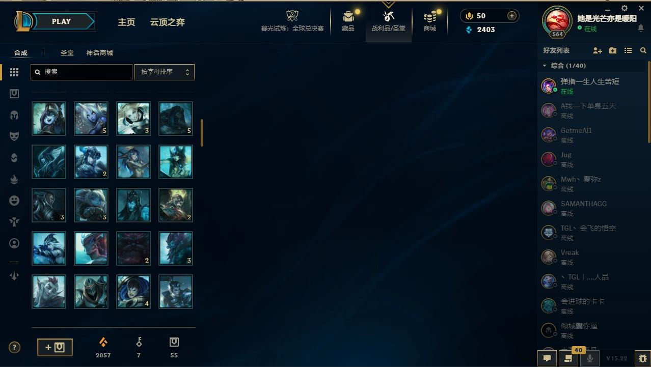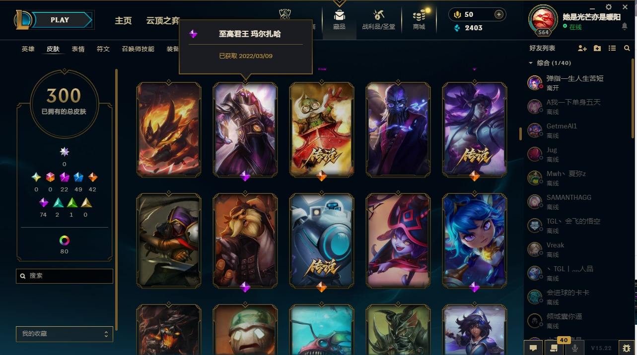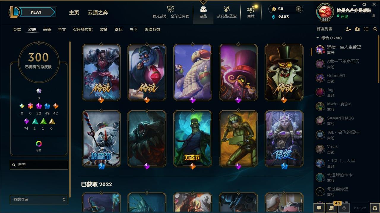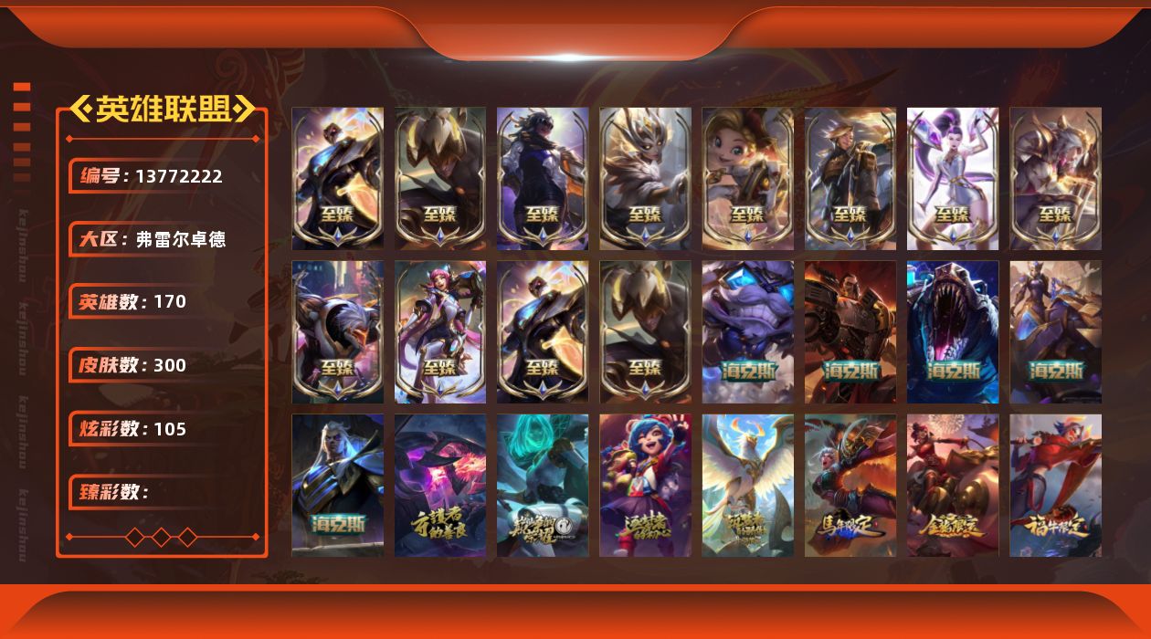 【19186】[13772222]22神话 49限定 42传说 74史诗 300皮肤 105炫彩 170英雄 可二次 可修改实名 【至臻】:至臻 未来战士 锤石(2022),至臻 黑夜使者 李青(2022),至臻 未来战士 锤石,至臻 黑夜使者 李青,至臻 真实伤害 赛娜,至臻 魔女 婕拉,至臻 奥术师 佐伊,至臻 灵能特工 伊泽瑞尔,至臻 K/DA ALL OUT卡莎,至臻 女帝 黛安娜,至臻