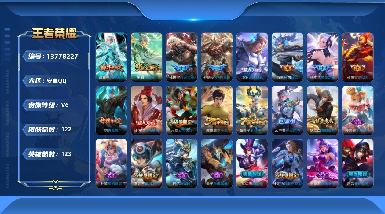 游戏区服:王者荣耀 / 安卓系统 / QQ账号