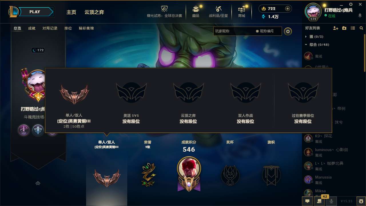 游戏区服:英雄联盟 / 电信 / 征服之海