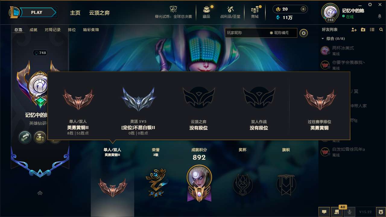 游戏区服:英雄联盟 / 电信 / 暗影岛