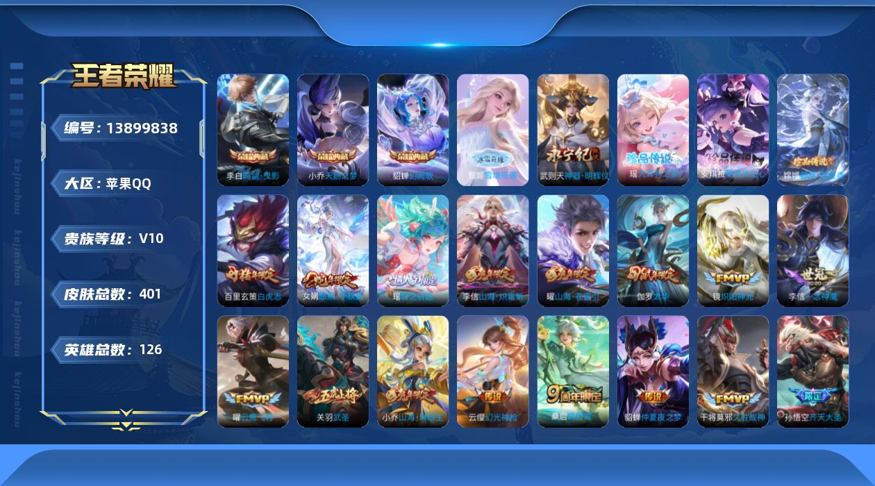 【42744】【可二次】【QQ(苹果)】夺宝奇兵 星界游侠 画中仙 晚萤 鹰眼统帅 一念神魔 猎兽之王 偶像歌手 雪境奇遇 优雅恋人 黄金白羊座 暗夜猫娘 紫霞仙子 挚爱花嫁 神器·明辉仪 遇见神鹿 真爱魔法 山海·苍雷引 繁星吟游 千年狐 暗夜贵公子 银河之约 零号赤焰 奇遇舞章 修罗 狂想玩偶喵 金属风暴 虎魄 青蛇 德古拉伯爵 江河有灵 黄金射手座后裔 赵云 赤莲之焰 白昼王子 电玩小子