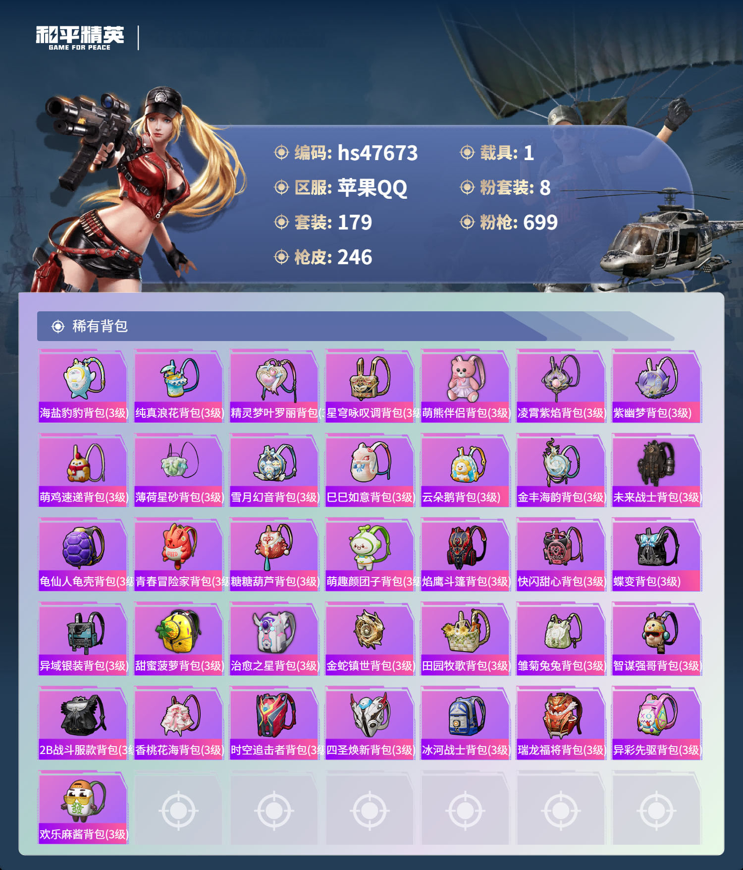 游戏区服:和平精英 / 苹果系统 / QQ帐号
