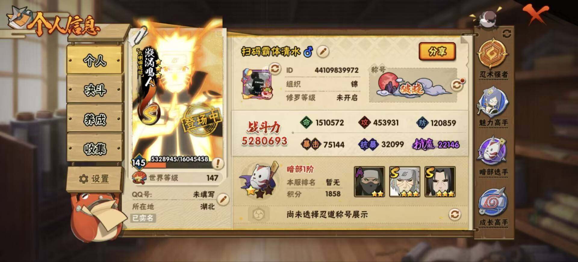 [13946001]Xr45100-安Q-可二次-10S级忍者数-27A级忍者数 【S级忍者】:千手扉间「秽土转生」(3星),千手柱间「秽土转生」(3星),宇智波鼬「秽土转生」(3星),宇智波斑「秽土转生·解」(3星),宇智波带土「忍界大战」(3星),宇智波鼬「须佐能乎」(3星),自来也「舞之豪杰」(3星),波风水门(3星),漩涡鸣人「九喇嘛连结」...