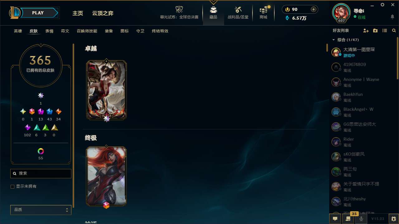 【52012】[13983624]t30842【裁决之地】殿堂传奇卡莎 365皮肤 94炫彩 12臻彩 13神话/43限定/34传说/171英雄 账号等级:607 云顶神话:1 单双排段位:铂金【重要皮肤】殿堂传奇卡莎 至高天凯尔至臻 灵能特工伊泽瑞尔至臻 黑夜使者凯隐至臻 神龙尊者均衡之龙沃利贝尔至臻 KDA二代卡莎至臻 黑夜使者李青至臻 殿堂传奇薇恩 殿堂传奇乐芙兰 零之
