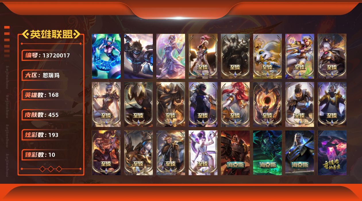 【53324】[13720017]t30341【恕瑞玛】 455皮肤 193炫彩 10臻彩 24神话/57限定/46传说/168英雄 账号等级:934 【重要头像】觅心之翼奎因 冬境仙灵妮蔻 周年女刀图标 泳池派对佐伊 KDA萨勒芬妮 凯隐飞升影流 灵魂莲华莉莉娅炫彩 灵魂莲华莉莉娅 战斗学院伊泽瑞尔 真实伤害艾克炫彩 征服者韦鲁斯炫金 【重要皮肤】机神玄武盖伦至臻 未
