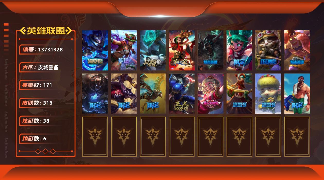 游戏区服:英雄联盟 / 电信 / 皮城警备