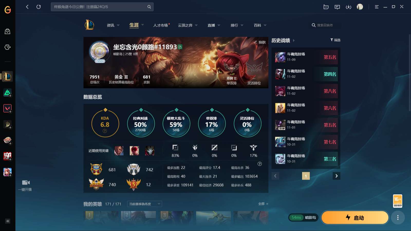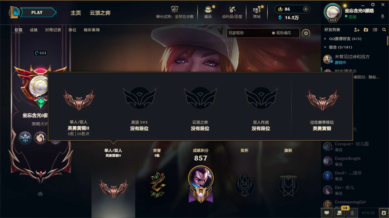 游戏区服:英雄联盟 / 电信 / 暗影岛