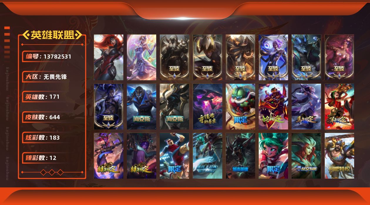 【53403】[13782531]t30498 皇冠账号【无畏先锋】黄龙瞎(无原皮)644皮肤 183炫彩 12臻彩 14神话/98限定/50传说/171英雄 账号等级:620 单双排段位:白银【重要头像】星守阿狸 泳池派对凯特琳 泳池派对佐伊 至臻剪纸仙灵希维尔 【重要皮肤】机神玄武盖伦至臻 墨之影武者亚索至臻 剪纸仙灵希维尔至臻 北极星使者沃里克至臻 月蚀骑士赛娜至臻 腥红