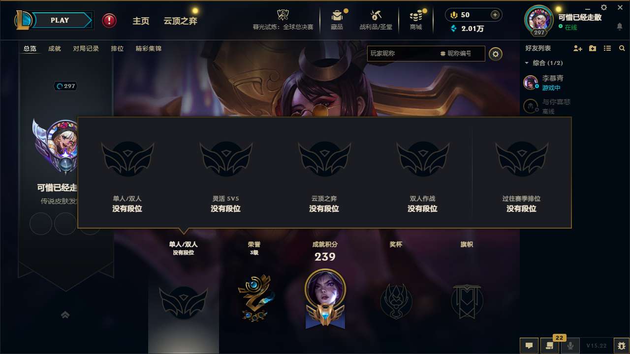 游戏区服:英雄联盟 / 电信 / 守望之海