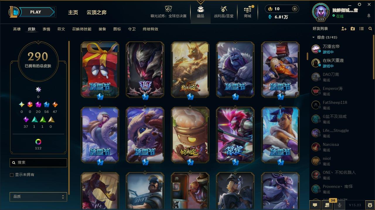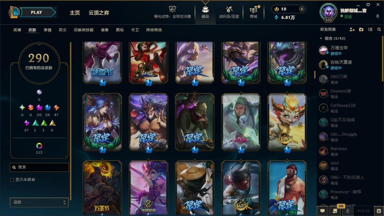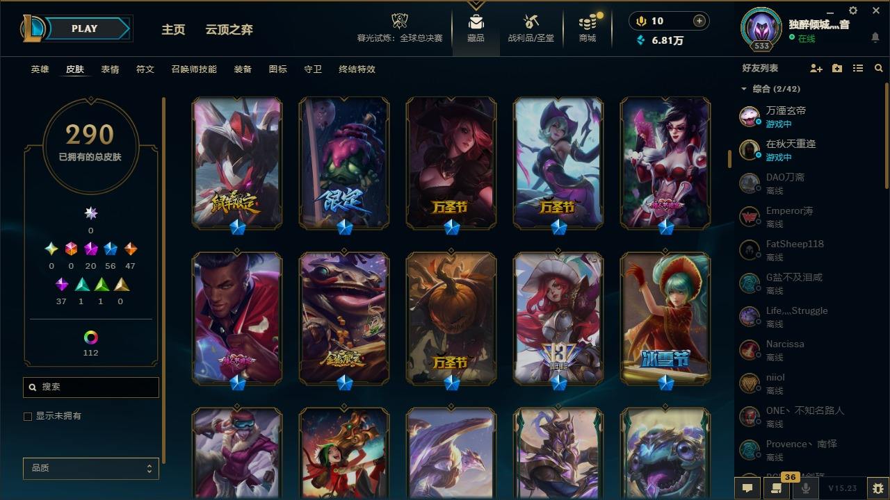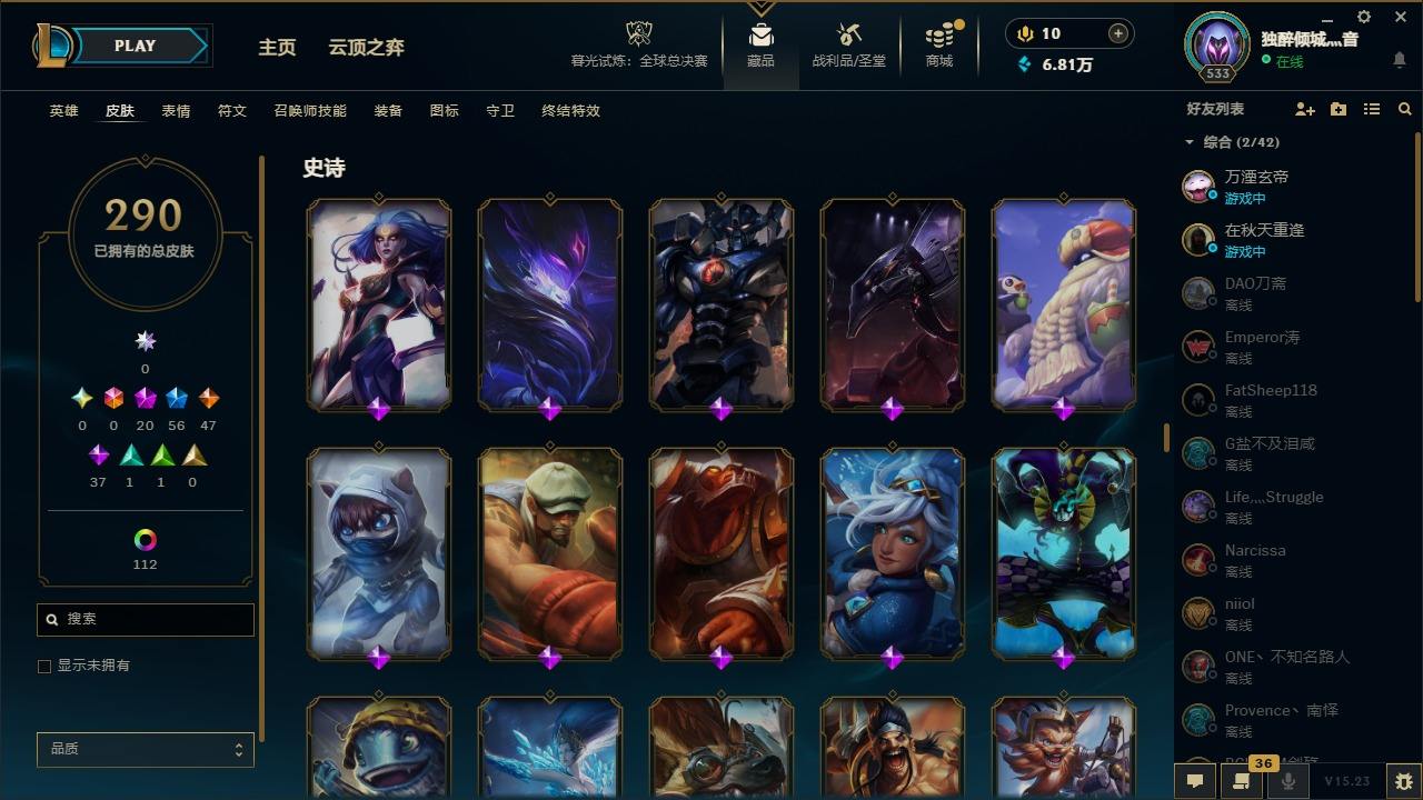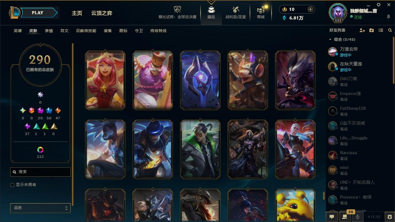 【54605】[13996098]20神话 56限定 47传说 37史诗 290皮肤 127炫彩 172英雄 可二次 可修改实名 【至臻】:至臻 未来战士 锤石(2022),至臻 电玩女神 凯特琳,至臻 未来战士 锤石,至臻 战斗学院 拉克丝,至臻 灵能特工 伊泽瑞尔,至臻 K/DA ALL OUT卡莎,至臻 源计划:阴 劫,至臻 魔女 乐芙兰,至臻 黑夜使者 凯隐,至臻 神凰行者 烈羽焰凰 霞