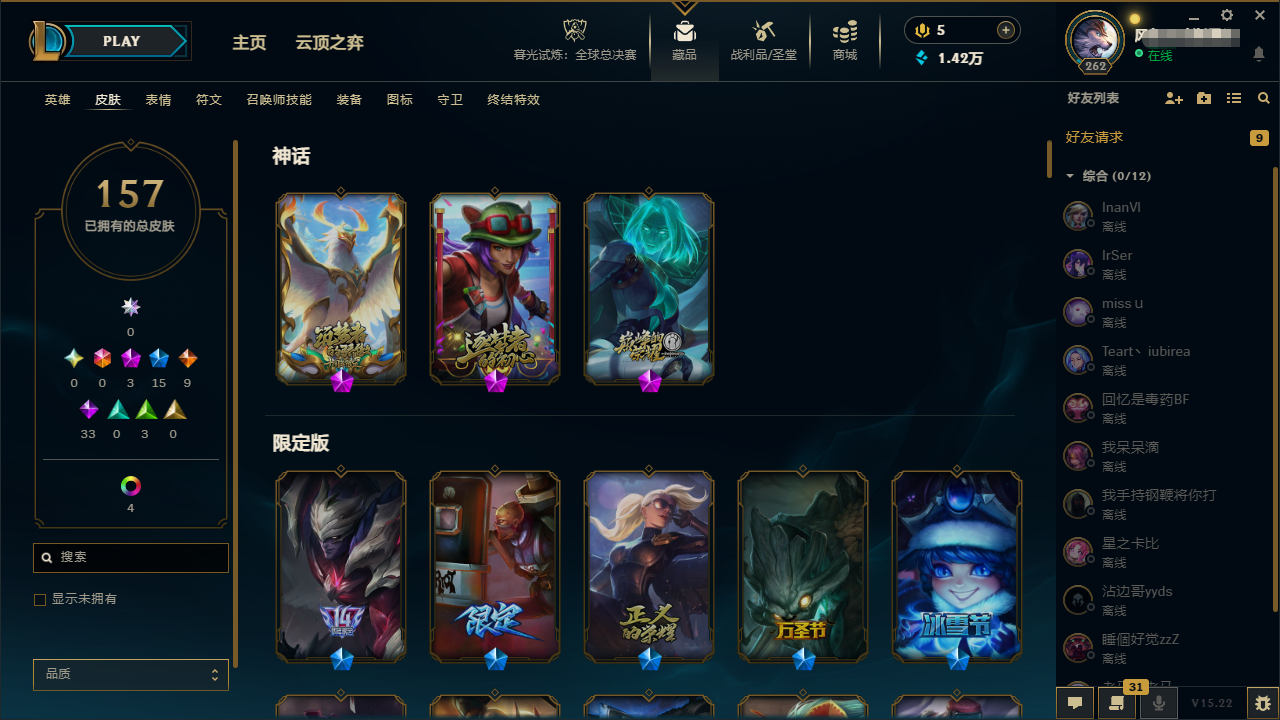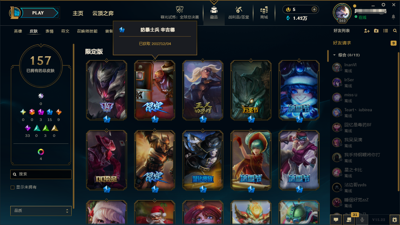 【59148】WL512【战争学院262级 英雄158 皮肤157 神话3 限定15 传说9 段位:未定级】158英雄-157皮肤-4炫彩-段位:未定级 防暴士兵炼金 警用试作体K-9内瑟斯 泳池派对吉格斯 外星装甲库奇 福牛守护者佛耶戈 10周年神凰行者瑞羽圣凰艾尼维亚 寒冬精灵璐璐 平安夜女神琴女 魄罗骑士瑟庄妮 圣诞精灵崔丝塔娜 圣诞老人酒桶 圣诞玩偶波比 地狱行者孙悟空 鬼影森森茂凯 黯