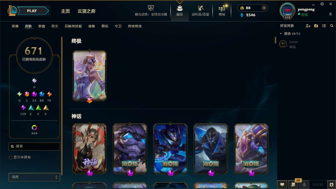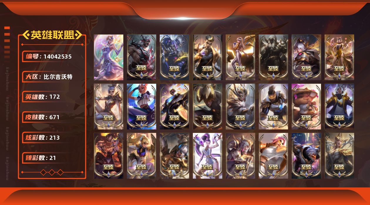 【59955】[14042535]t31002【比尔吉沃特】671皮肤 513炫彩 21臻彩 53神话/86限定/70传说/172英雄 账号等级:638 云顶神话:2 单双排段位:铂金【重要头像】云顶战斗学院伊泽瑞尔 云顶古琴娑娜 云顶星守阿卡丽 至爱的鹿 爱情鸽 爱情之歌 我麦是开的么 泳池派对凯特琳 泳池派对佐伊 万圣节卡特琳娜 KDA阿卡丽炫彩 KDA萨勒芬妮 幻灵