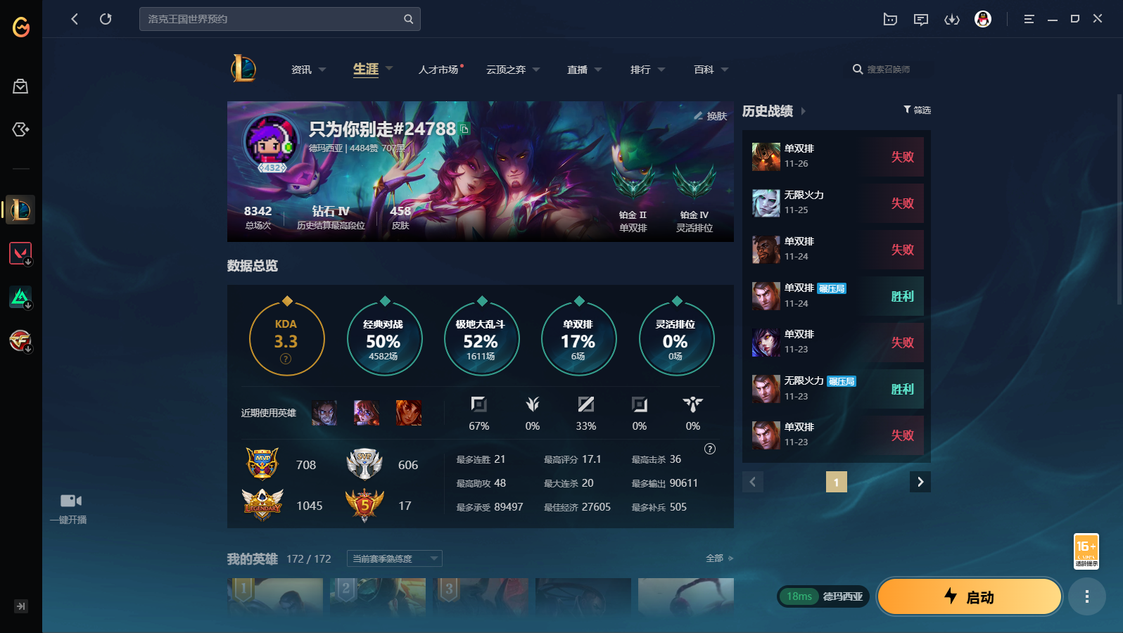 游戏区服:英雄联盟 / 网通 / 德玛西亚
